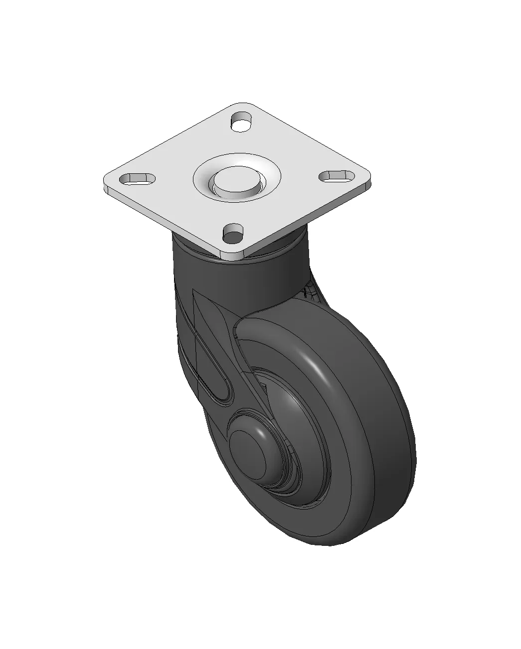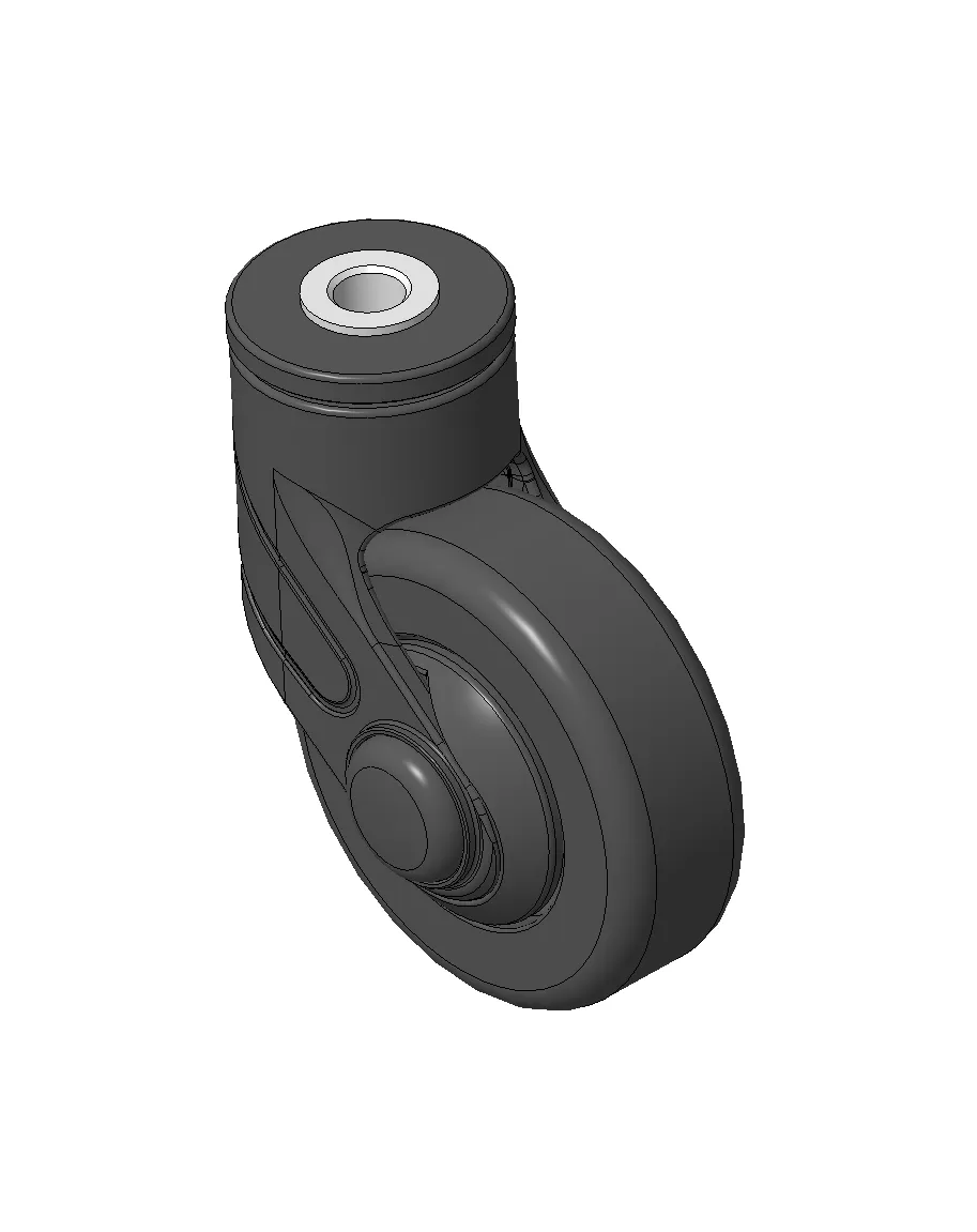 Chân bánh xe màu đen làm bằng vật liệu gia cố polyamide, lắp chốt định vị.