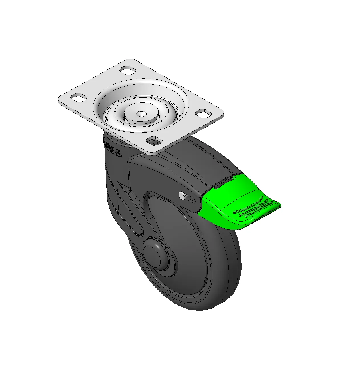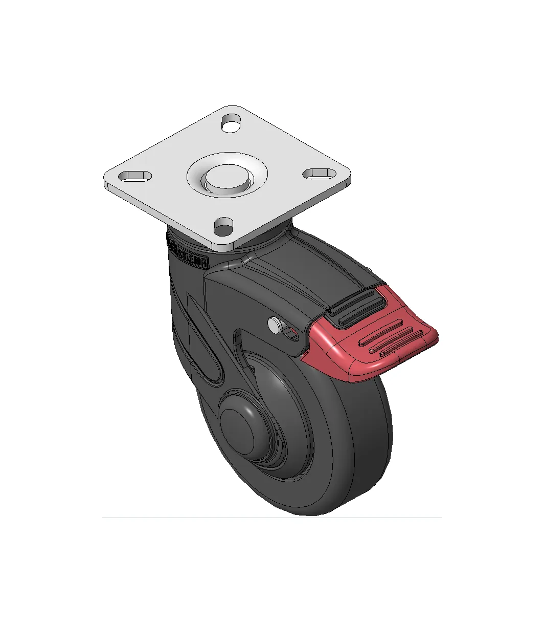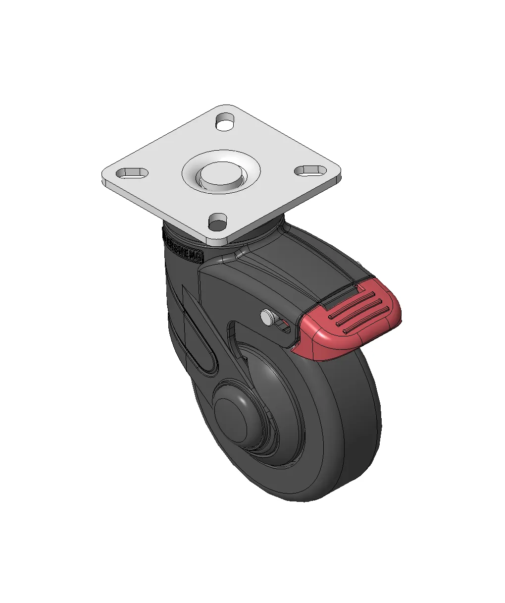 Bánh xe với hệ thống khóa kép dài, đế cao cấp—đế lỗ góc 42,5x42,5