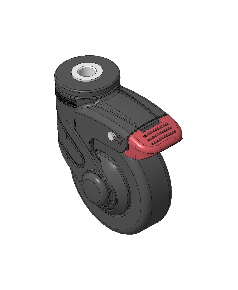 Bánh xe dài với hệ thống khóa phanh kép, lắp đinh tán rỗng—lỗ rỗng Ø10,2