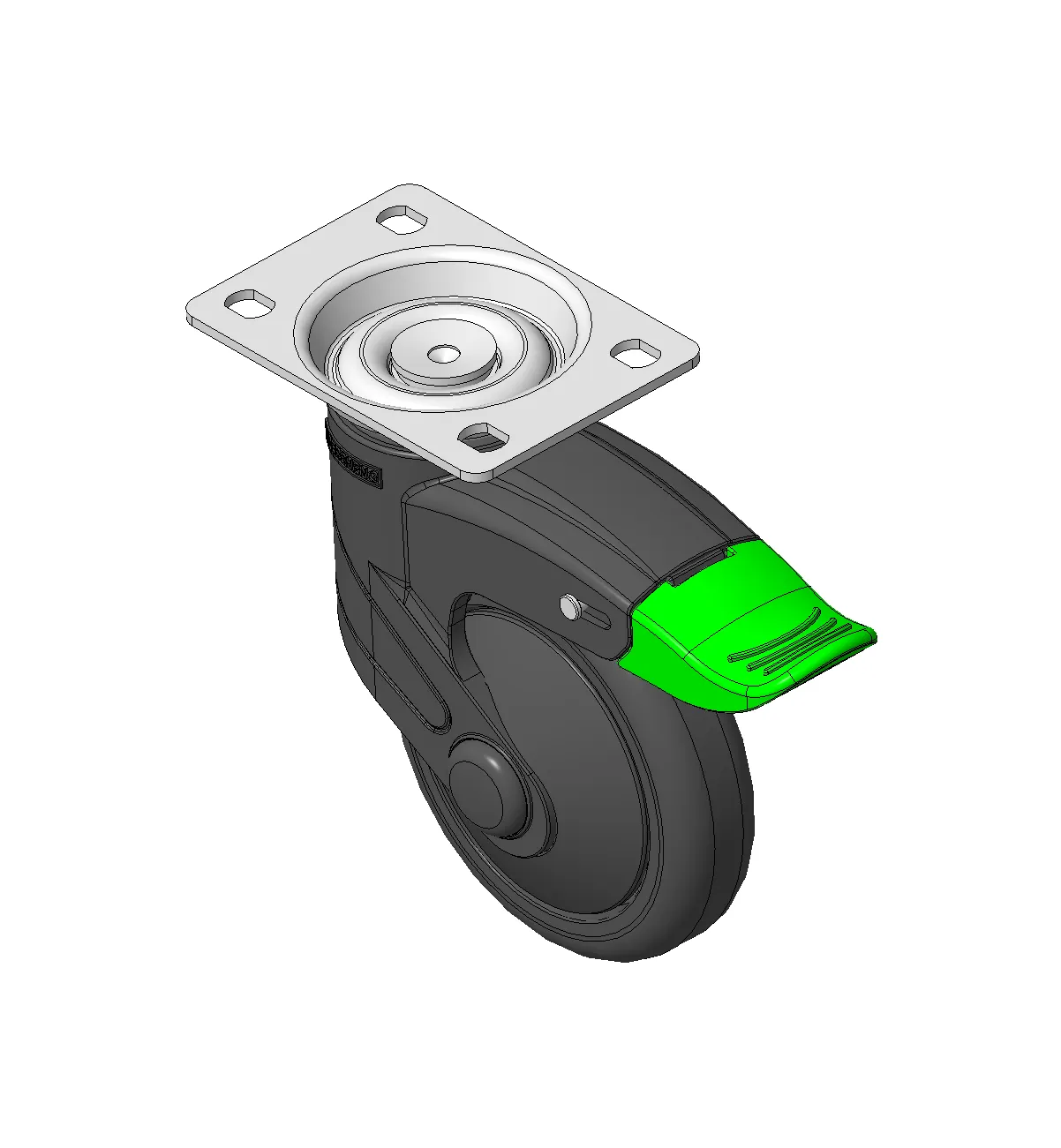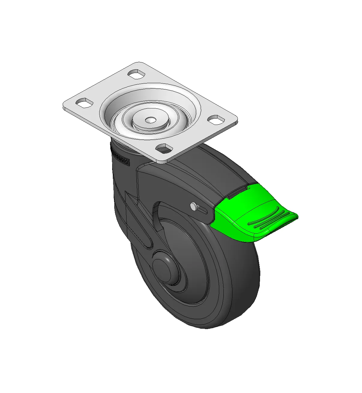 Bánh xe có hệ thống khóa phanh định hướng, đế lỗ góc 75x45