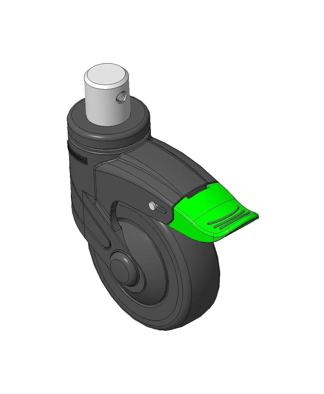 Chân bánh xe màu đen làm bằng vật liệu gia cố polyamide, lắp chốt định vị.