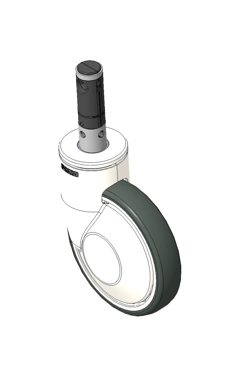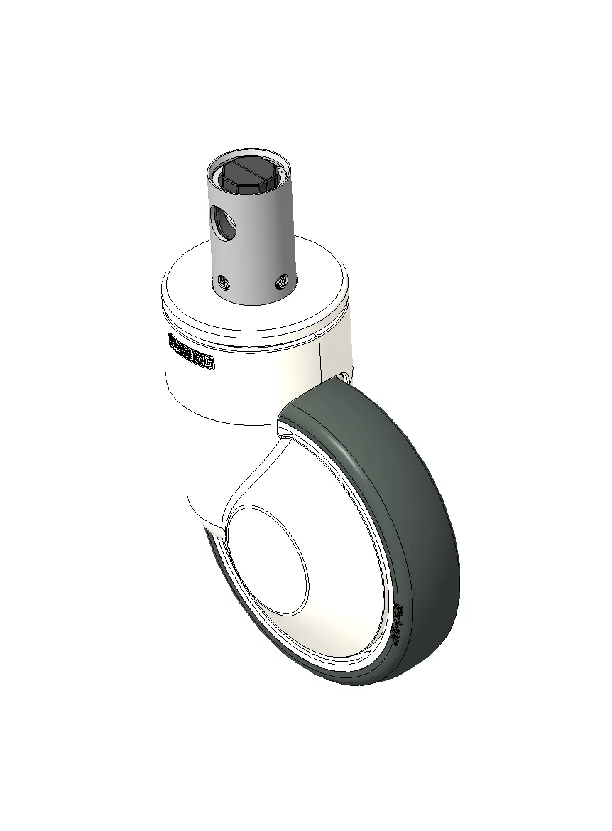 Lõi bánh xe bằng polypropylene chống va đập, bề mặt bánh xe bằng nhựa nhiệt dẻo đàn hồi (TPR). Vòng bi bánh xe màu xám đậm—vòng bi chính xác.