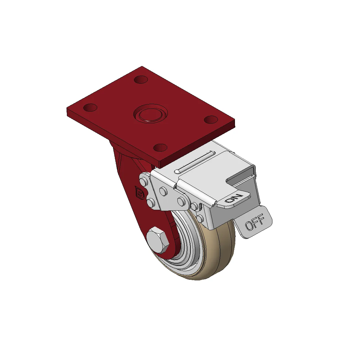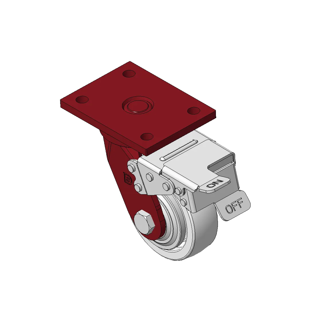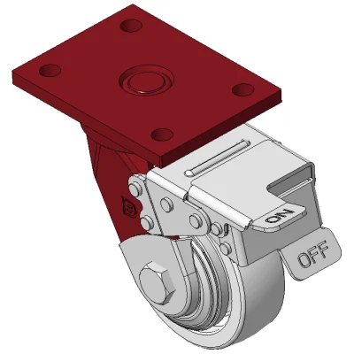 Bánh xe có phanh trước và hệ thống khóa, khung thép hàn Sơn đỏ, lắp đế, khoảng cách lỗ 90x60 Lõi bánh xe bằng nhựa nhiệt dẻo, gai bánh xe tự nhiên Vòng bi bánh xe—vòng bi chính xác với nắp bánh xe chống quấn đặc biệt