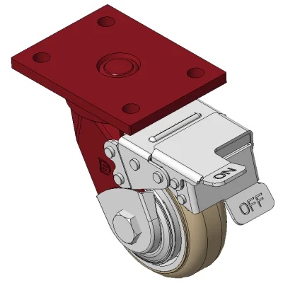 Bánh xe có phanh trước và hệ thống khóa, khung thép hàn Sơn đỏ, lắp đế, khoảng cách lỗ 90x60 Lõi bánh xe bằng nhựa nhiệt dẻo, gai bánh xe tự nhiên Vòng bi bánh xe—vòng bi cầu chính xác