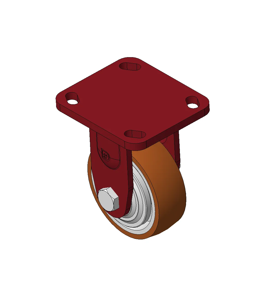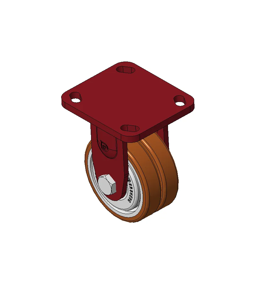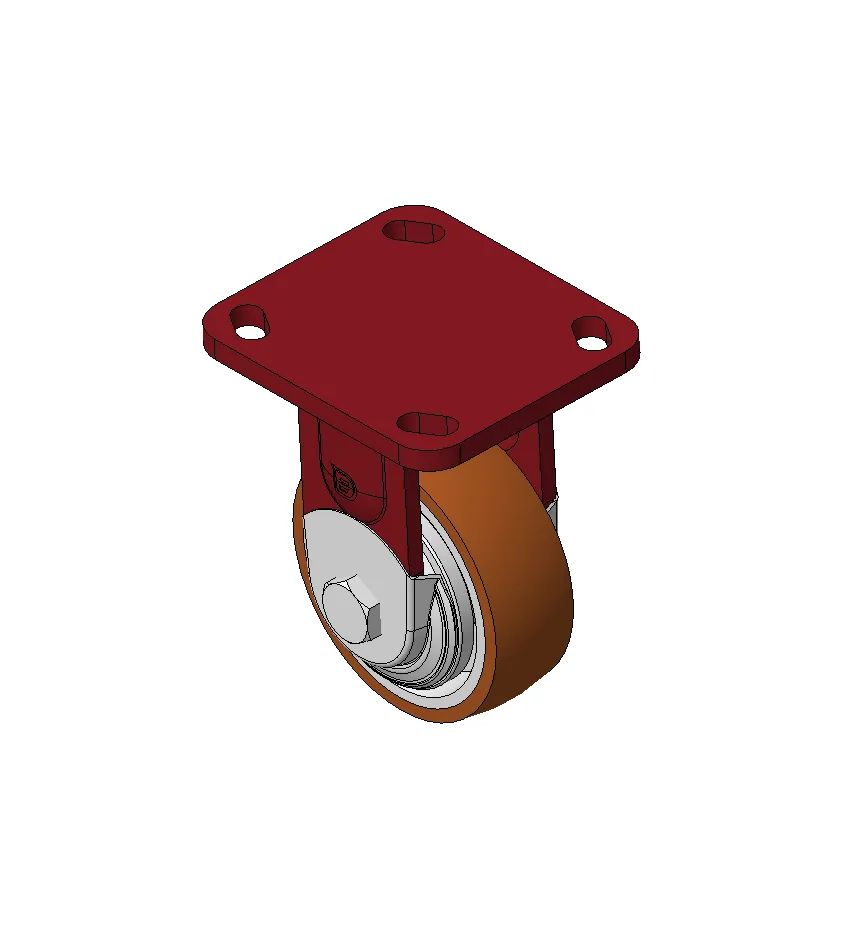 Bánh xe cố định, khung thép hàn, sơn đỏ