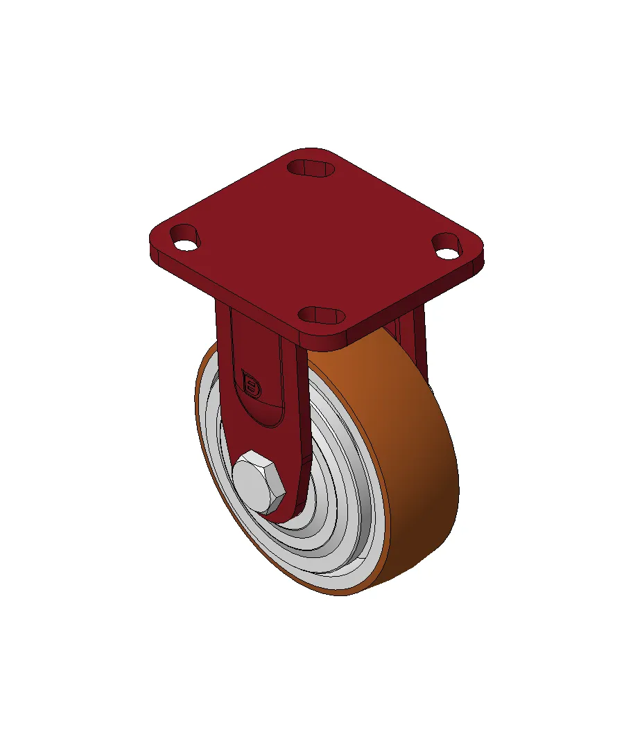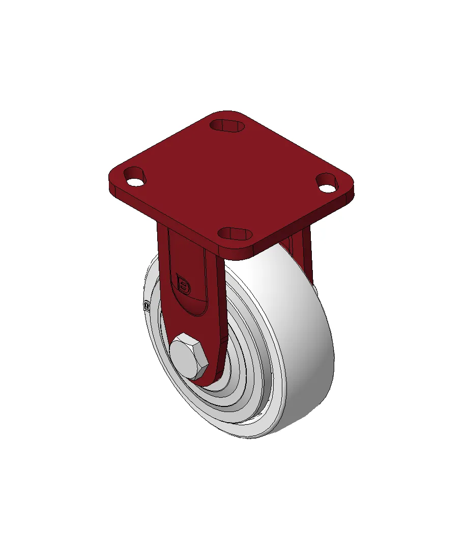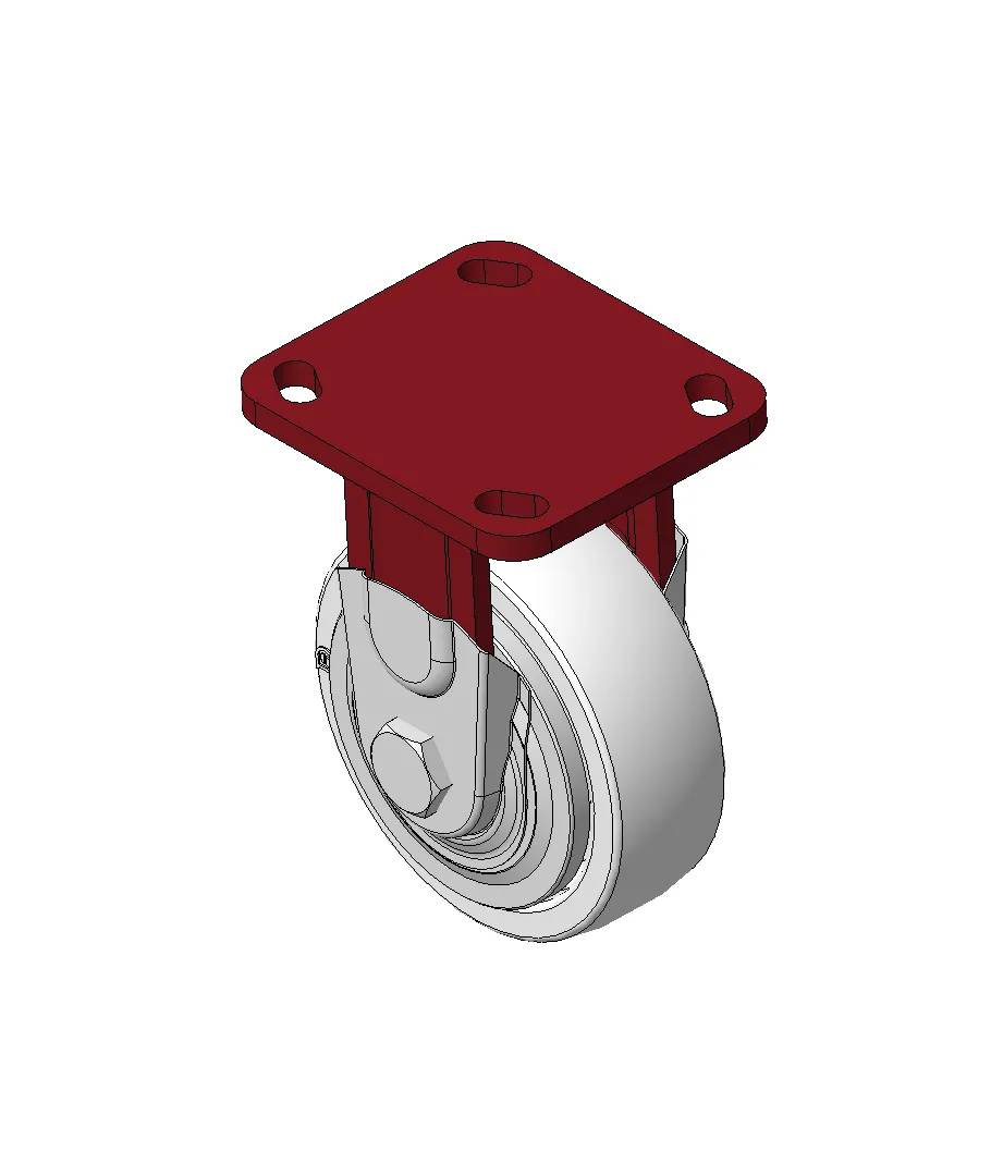 Bánh xe cố định, khung thép hàn, sơn đỏ Lắp đế, khoảng cách lỗ 85x70 Lõi bánh xe bằng nhựa nhiệt dẻo, gai bánh xe màu tự nhiên Vòng bi bánh xe—vòng bi cầu chính xác