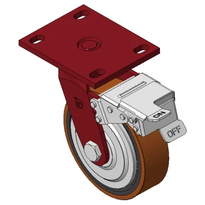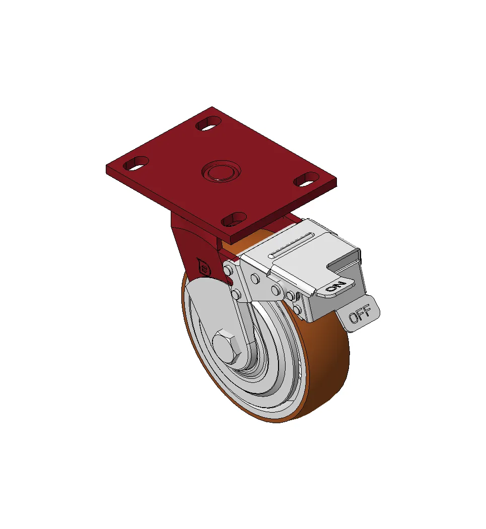 Bánh xe có phanh trước và hệ thống khóa, khung thép hàn Sơn đỏ, lắp đế, khoảng cách lỗ 110x75 Lõi gang, gai polyurethane chất lượng cao, phay màu nâu Vòng bi bánh xe—vòng bi chính xác với nắp chống quấn đặc biệt