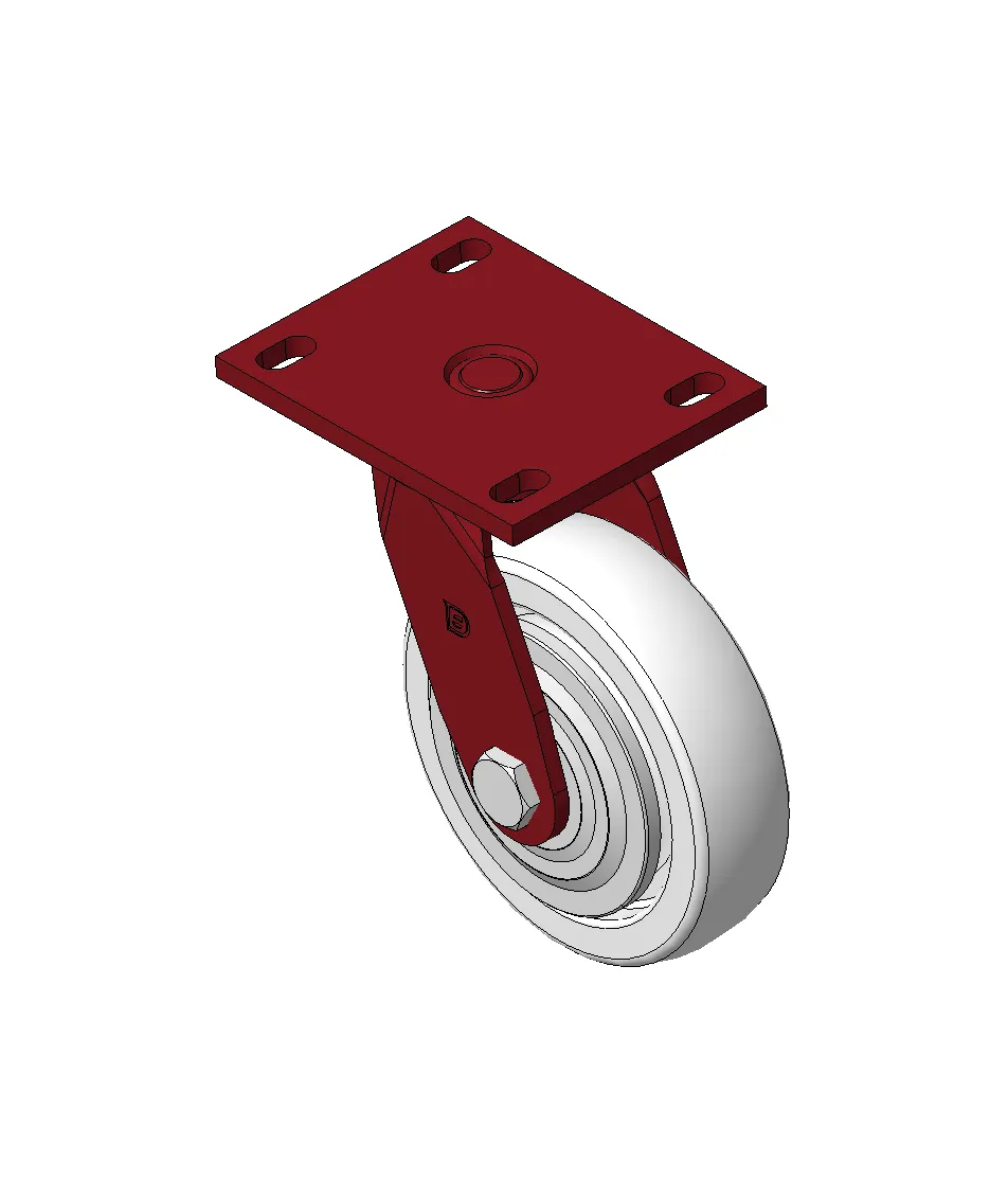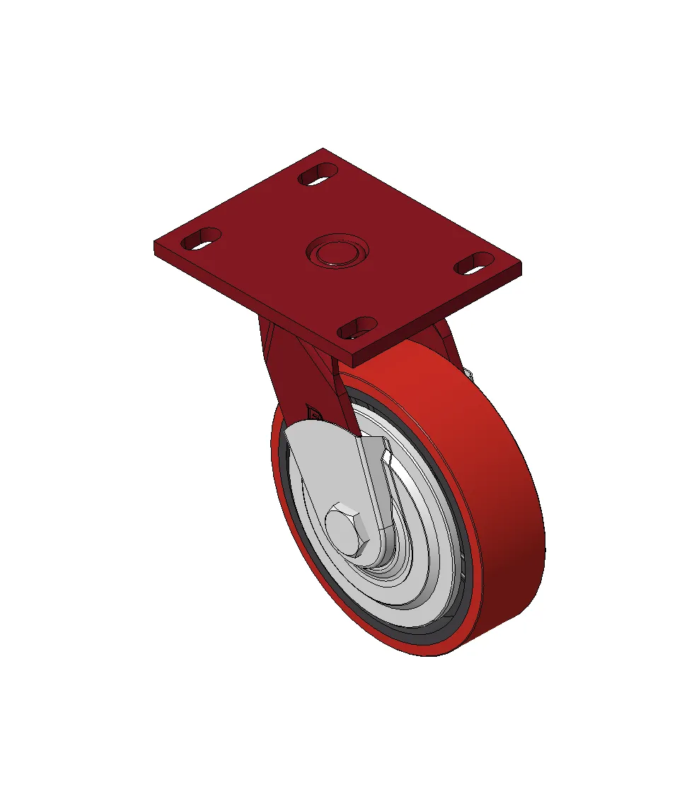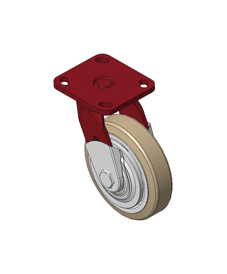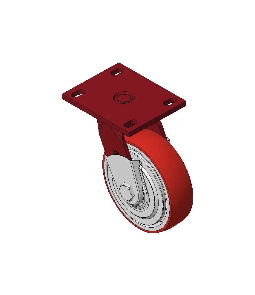 Bánh xe xoay với khung thép hàn, sơn phủ màu đỏ.