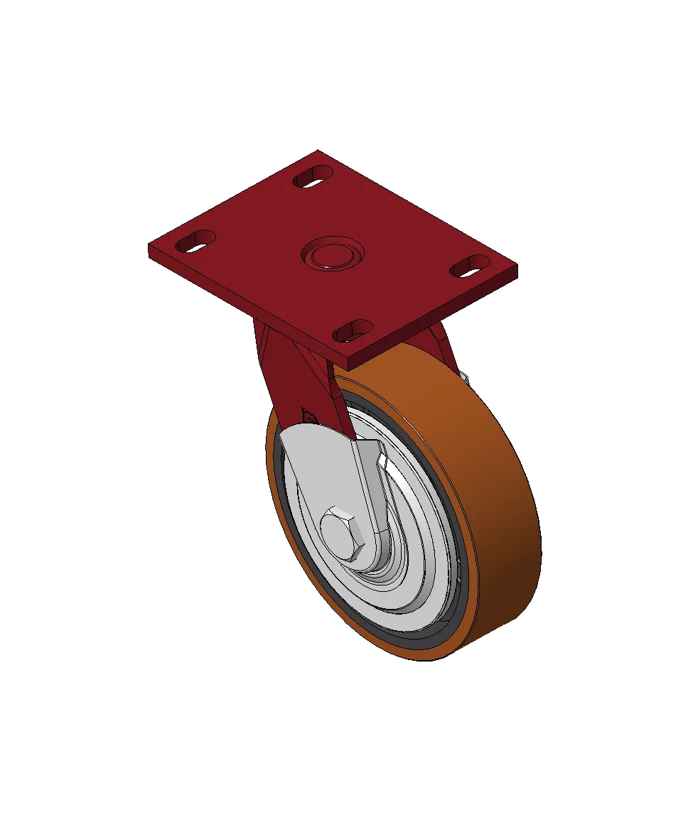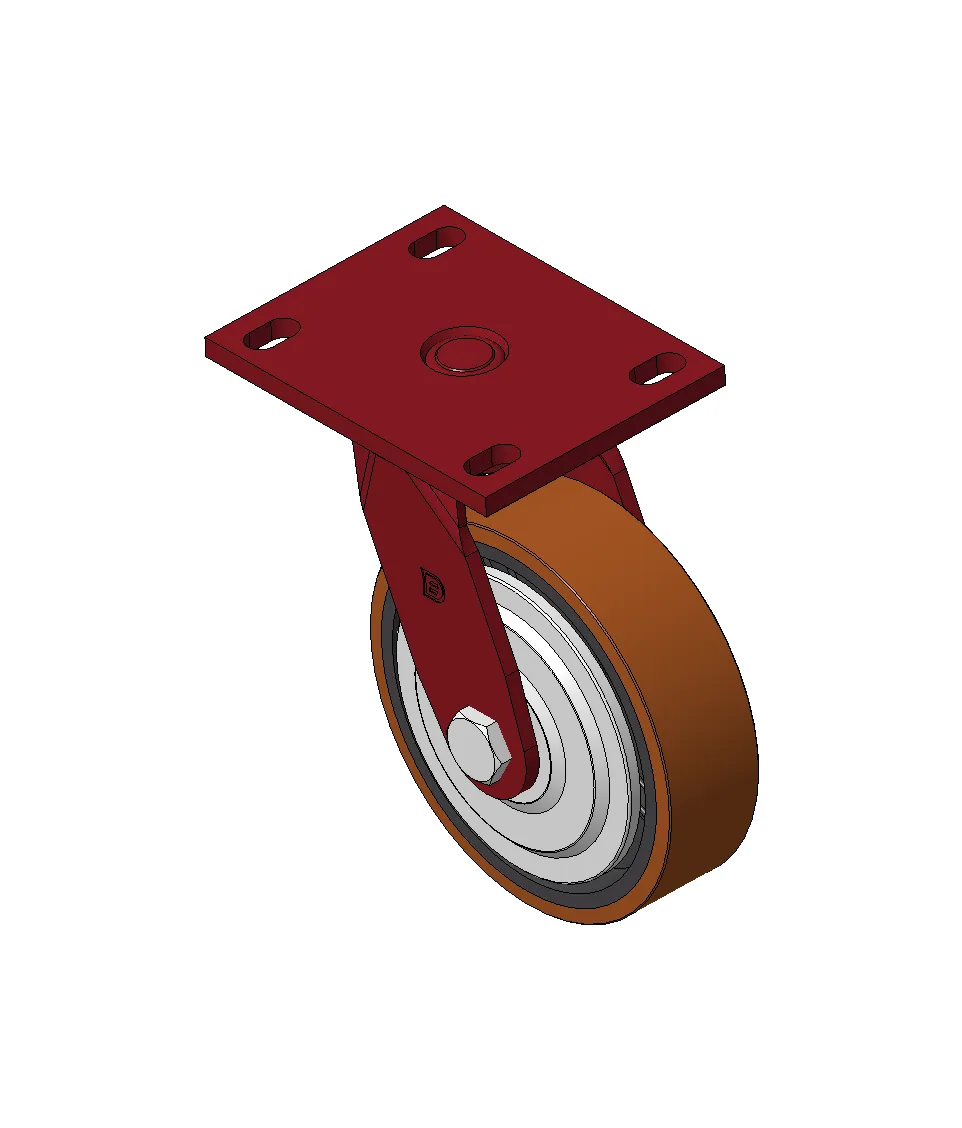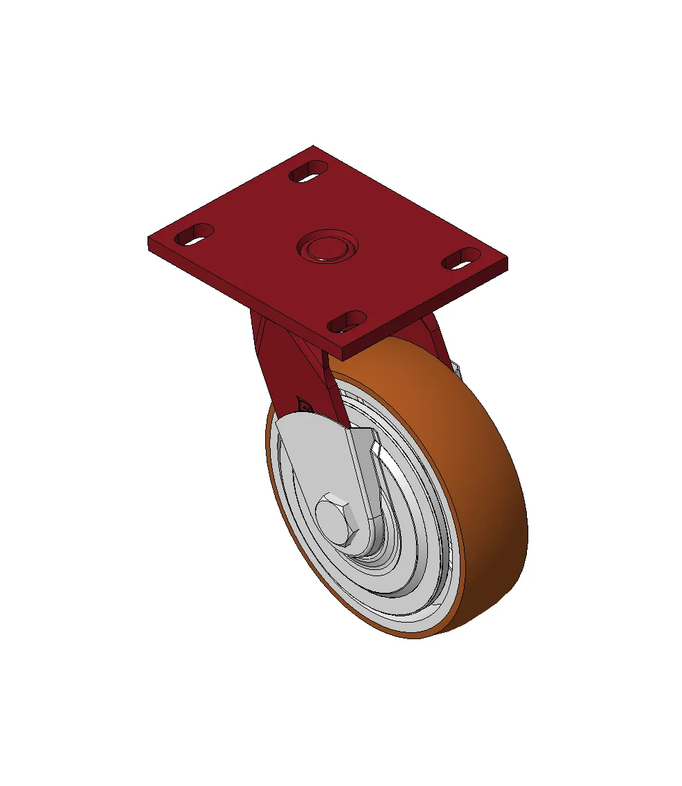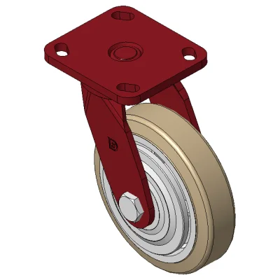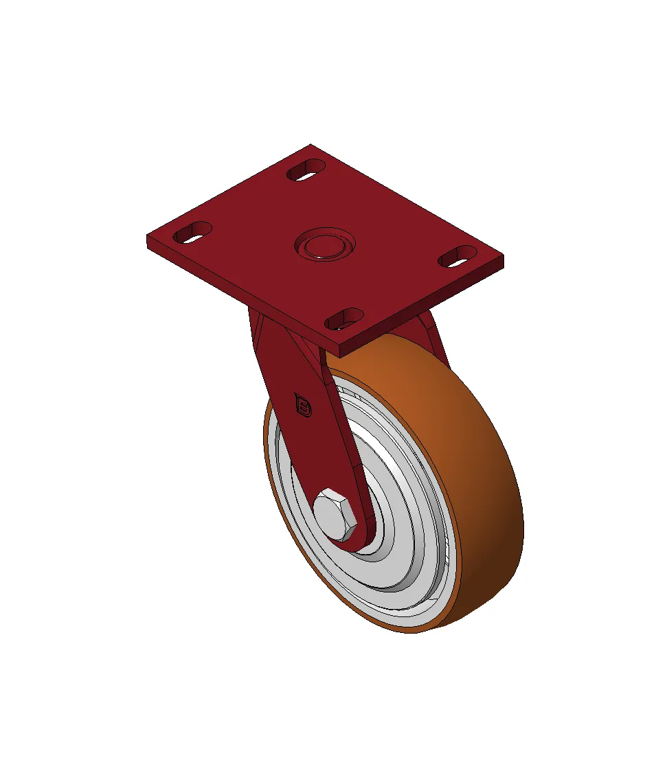 Bánh xe xoay với khung thép hàn, sơn phủ màu đỏ.