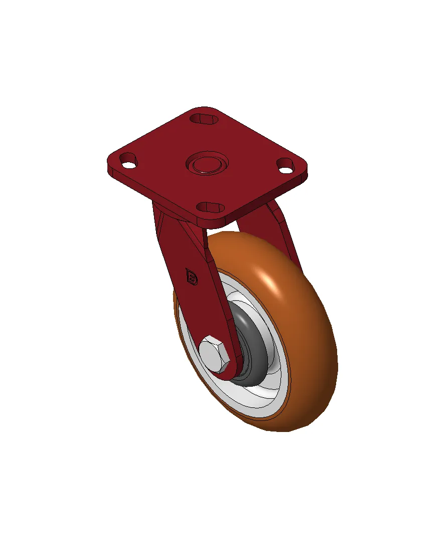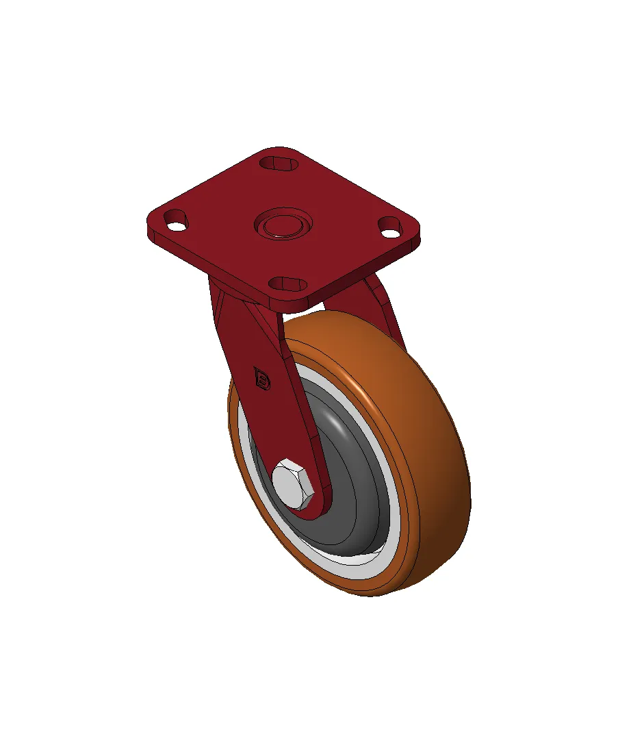 Bánh xe xoay với khung thép hàn, sơn đỏ