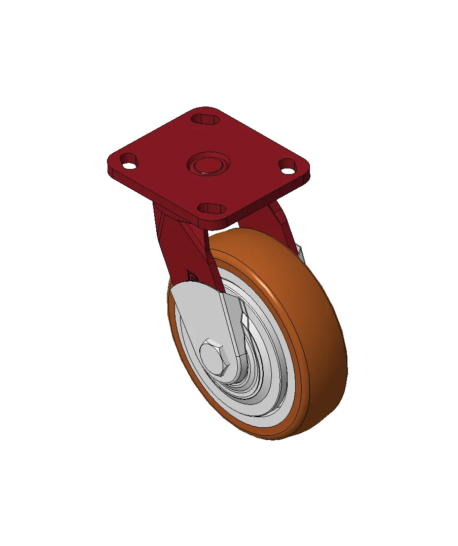 Lõi bánh xe bằng gang, bề mặt bánh xe bằng polyurethane chất lượng cao, phay màu đỏ