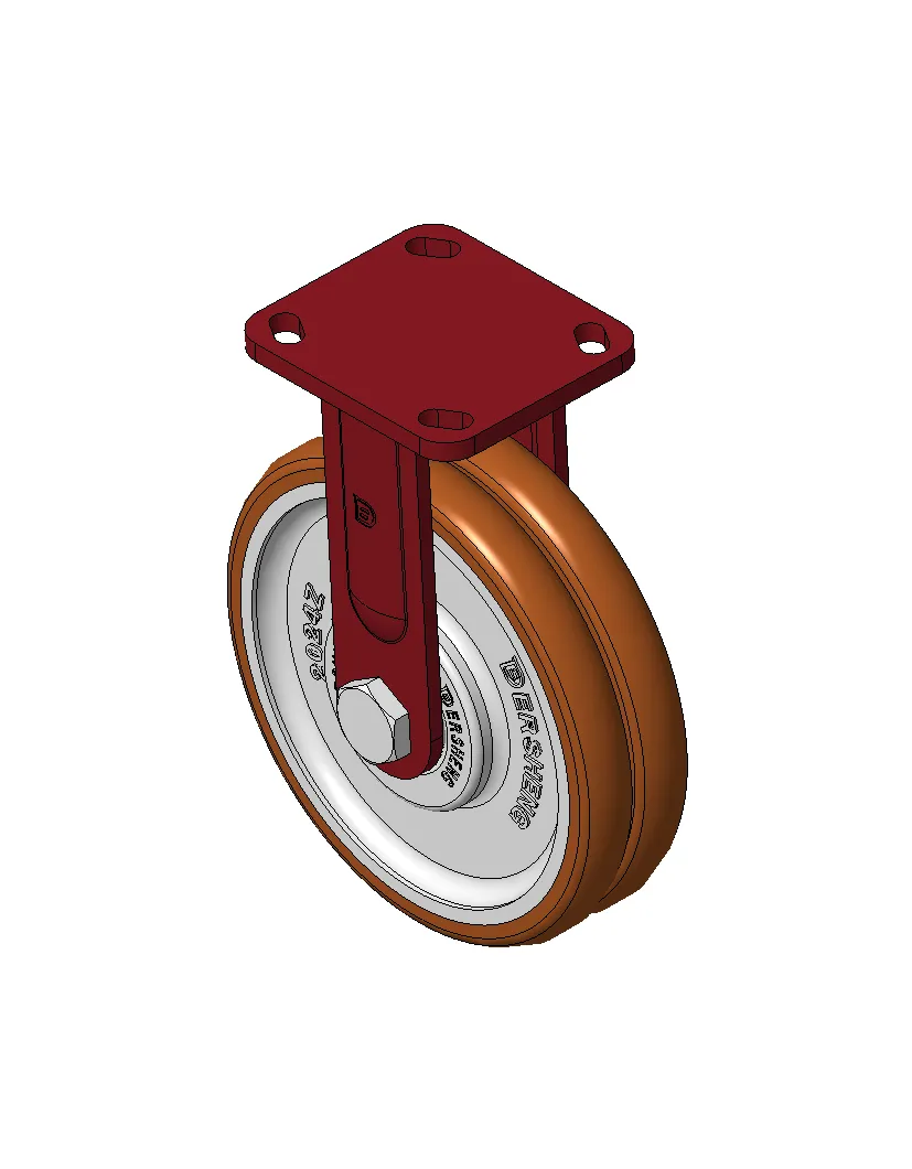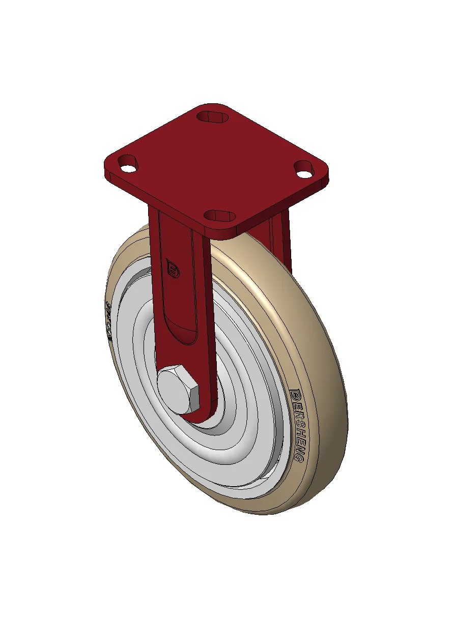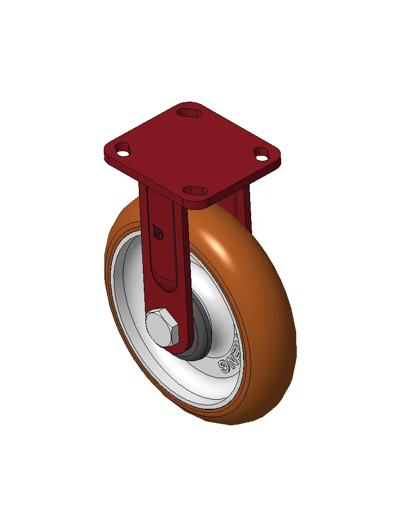 Lõi bánh xe làm bằng gang, bề mặt bánh xe bằng polyurethane chất lượng cao, phay màu nâu