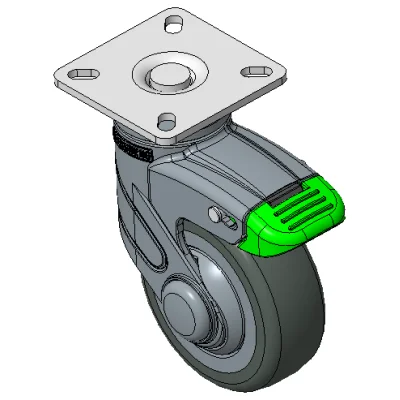 Bánh xe ngắn, phanh kép, hệ thống khóa 180 độ, đế lỗ góc 42,5x42,5
