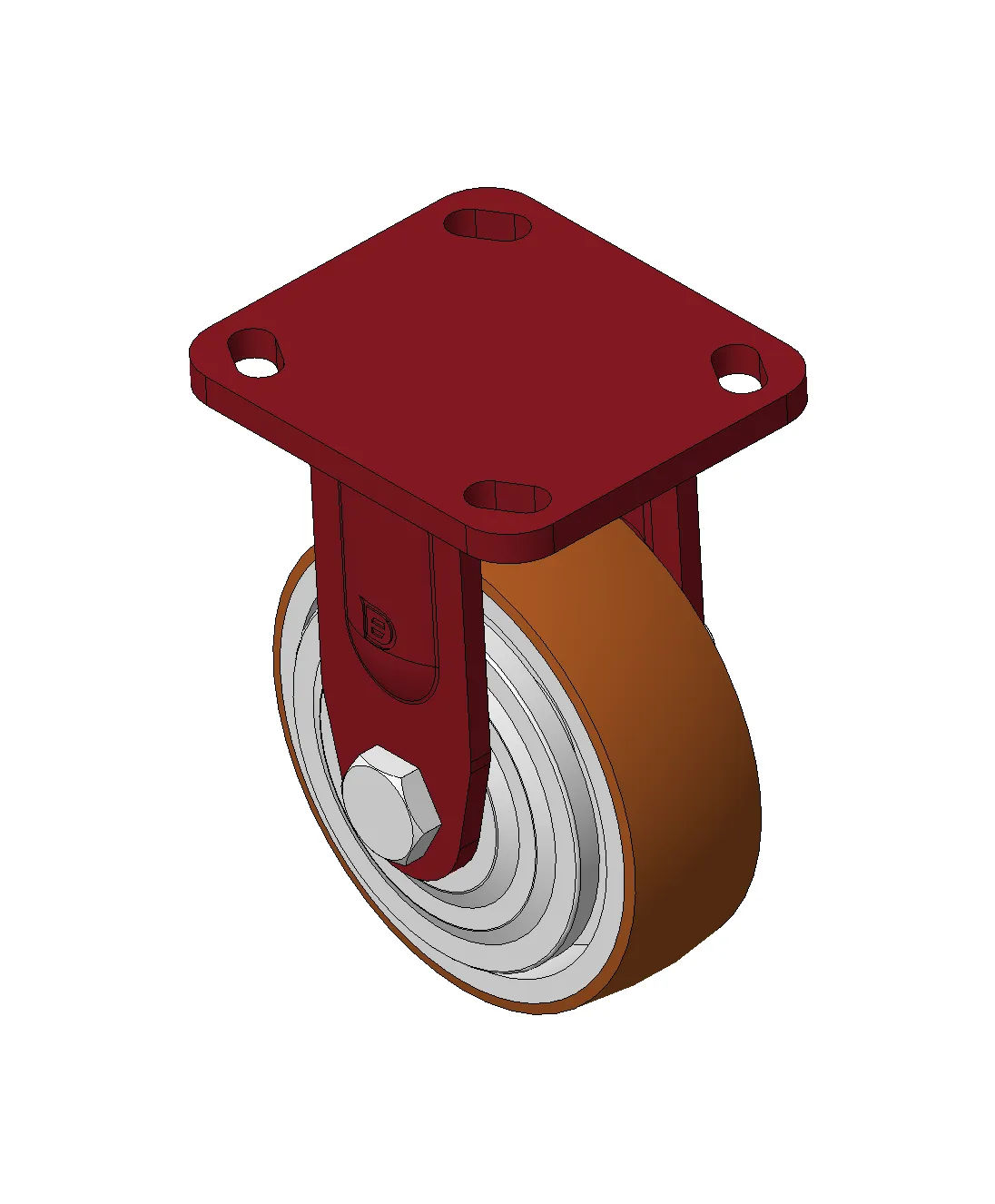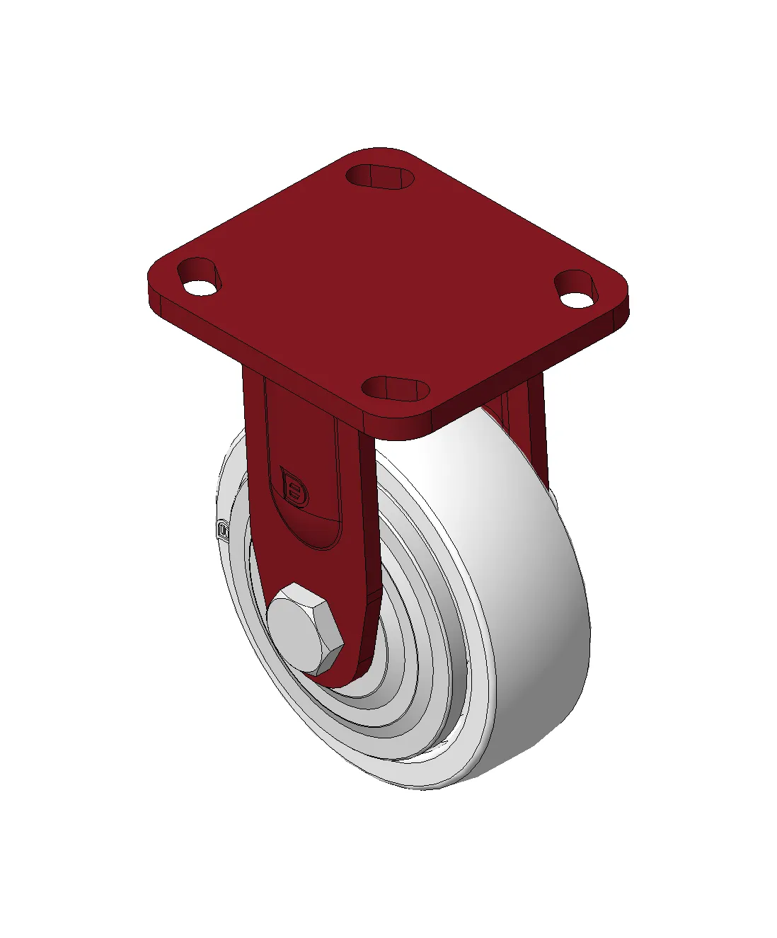 Bánh xe cố định với khung thép hàn, sơn đỏ