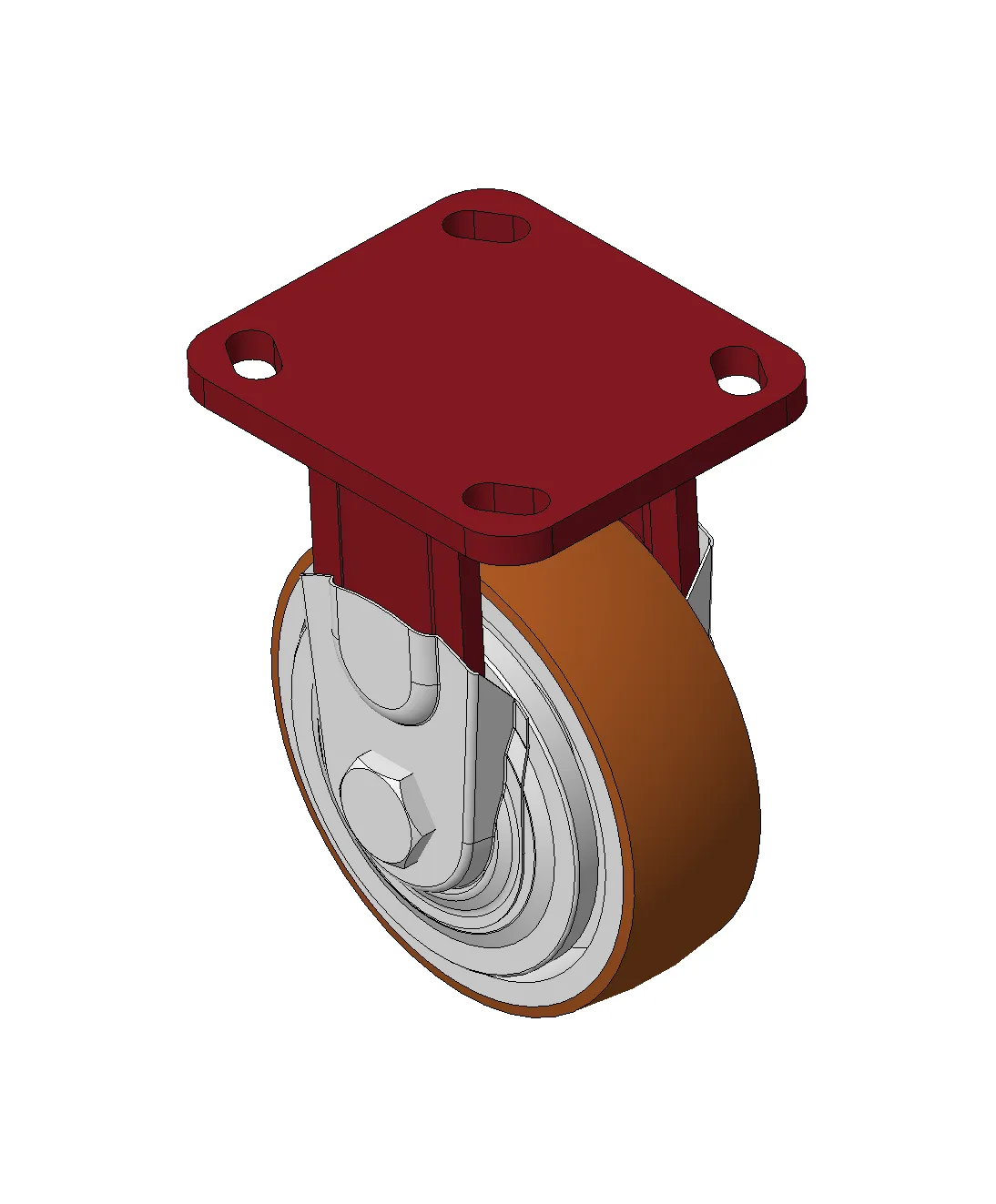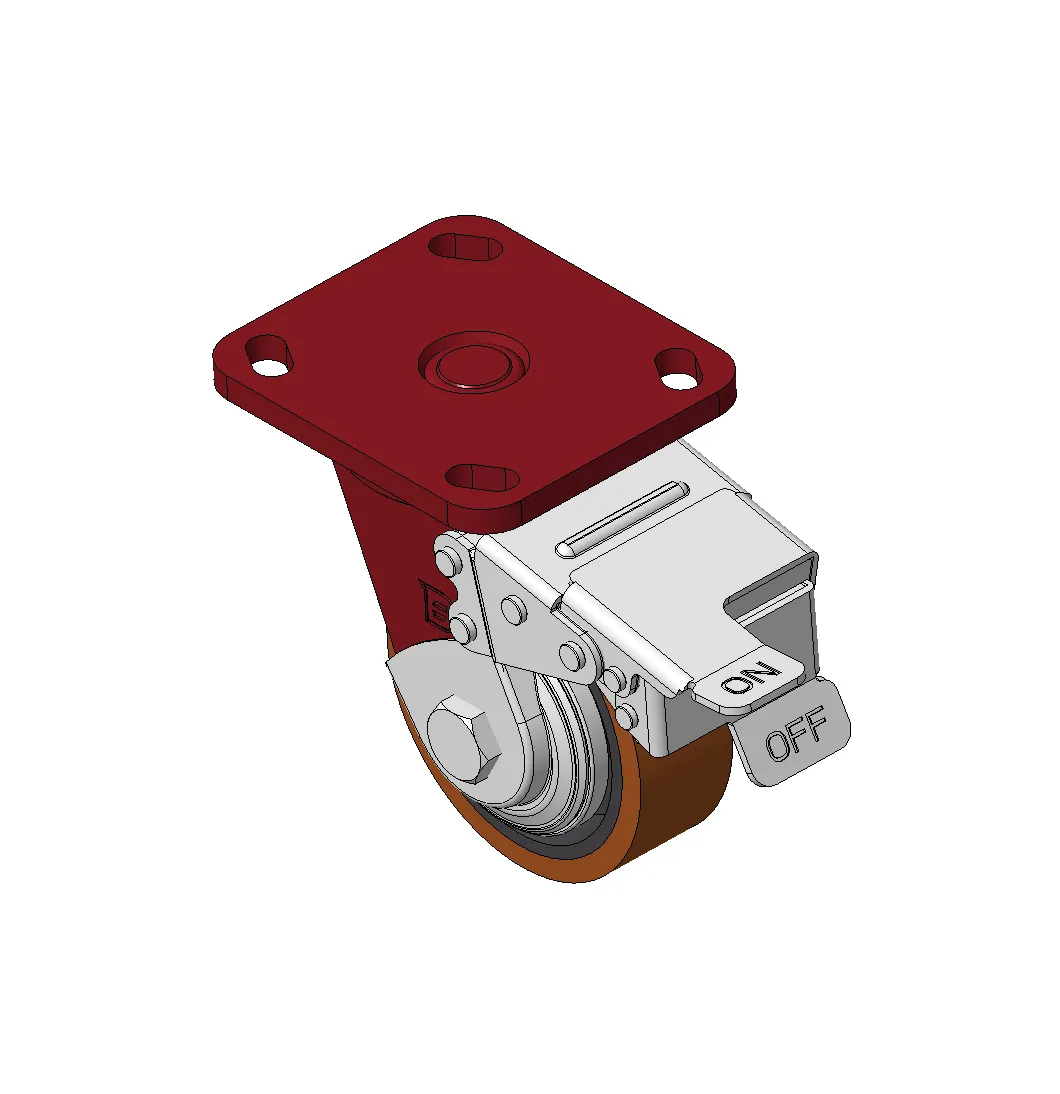 Bánh xe có phanh trước và hệ thống khóa, khung thép hàn Sơn đỏ, lắp đế, khoảng cách lỗ 85x70 Lõi gang, gai polyurethane chất lượng cao, phay màu nâu Vòng bi bánh xe—vòng bi chính xác với nắp chống quấn đặc biệt