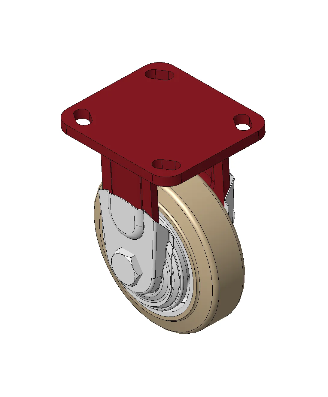 Bánh xe cố định với khung thép hàn, sơn phủ màu đỏ.