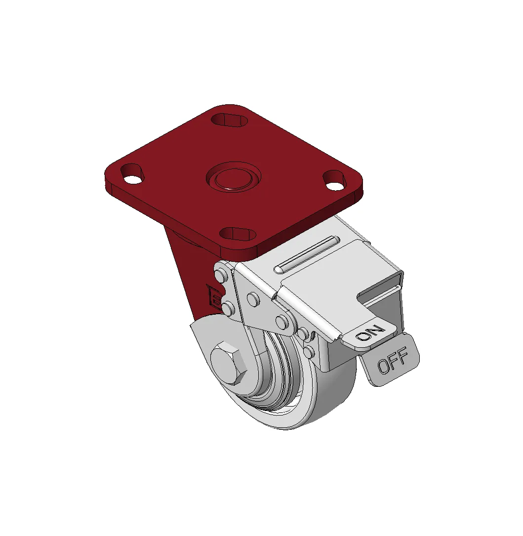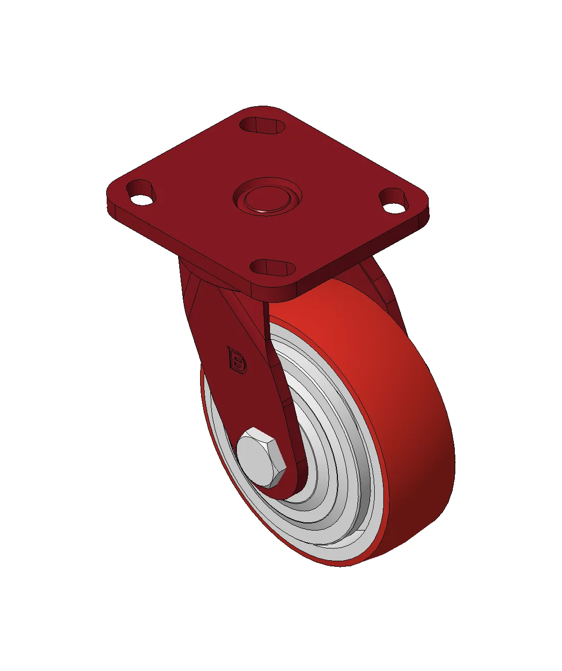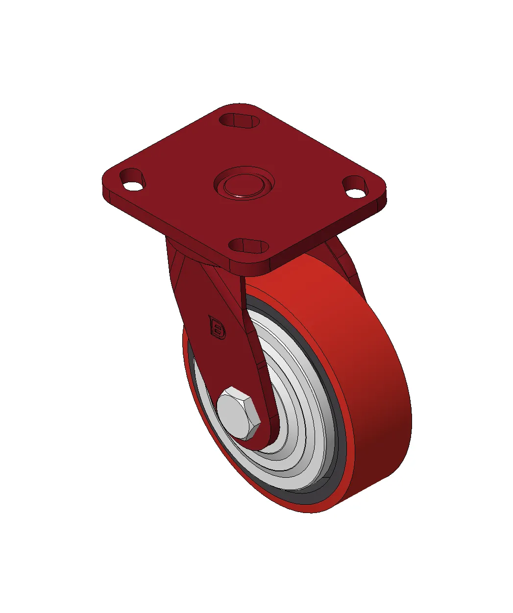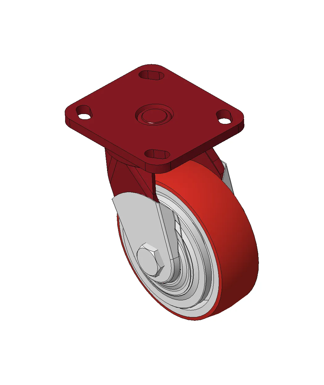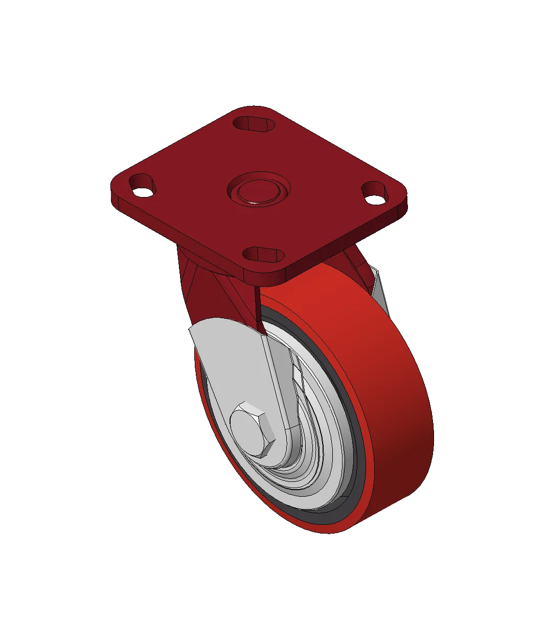 Bánh xe xoay với khung thép hàn, sơn phủ màu đỏ.