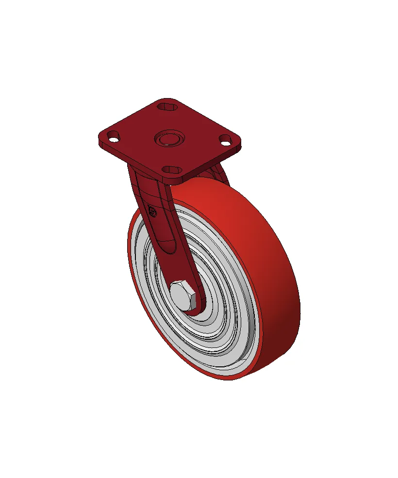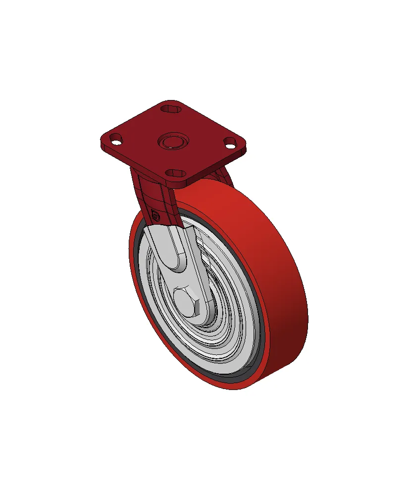 Lõi bánh xe bằng gang, bề mặt bánh xe bằng polyurethane chất lượng cao, phay màu đỏ