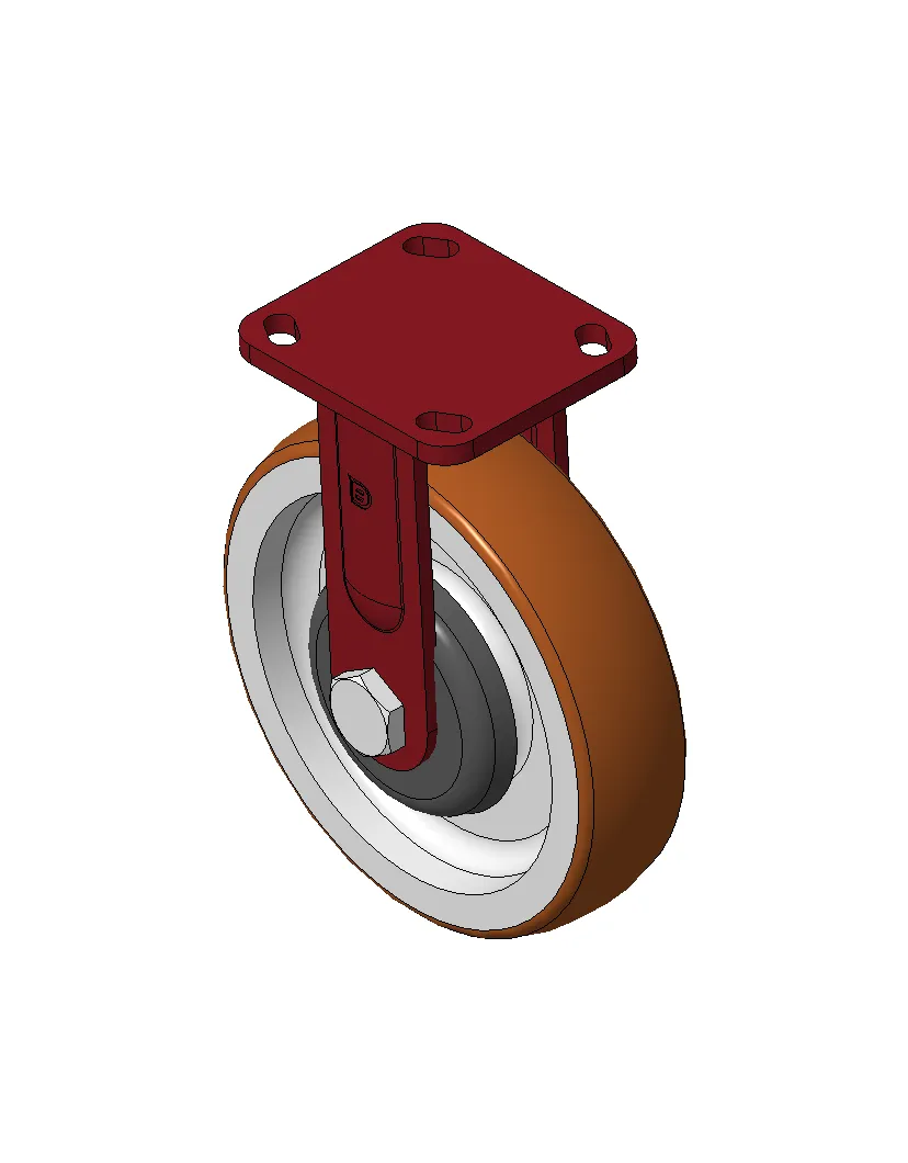 Lõi bánh xe làm bằng gang, bề mặt bánh xe bằng polyurethane chất lượng cao, phay màu nâu