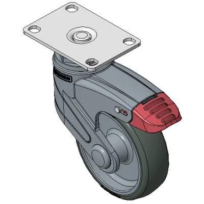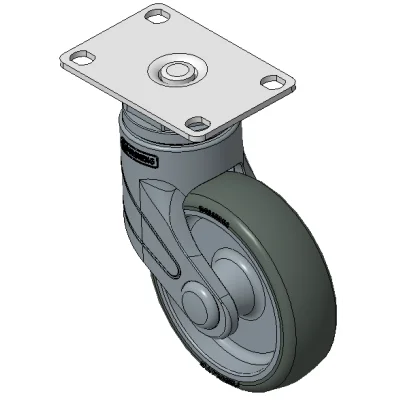 Bánh xe phanh kép, đế cao cấp - khoảng cách lỗ 42,5x42,5mm Chân màu xám xanh làm bằng cốt thép polyamide, lắp đặt trên đế Chống gỉ, chống ăn mòn, thẩm mỹ, tiết kiệm và xoay linh hoạt Lõi bánh xe bằng polypropylene chịu va đập, bề mặt bánh xe bằng chất đàn hồi nhiệt dẻo (TPR) Màu xám đậm ánh ngọc trai, bánh xe có ống ở giữa, không có nắp đậy