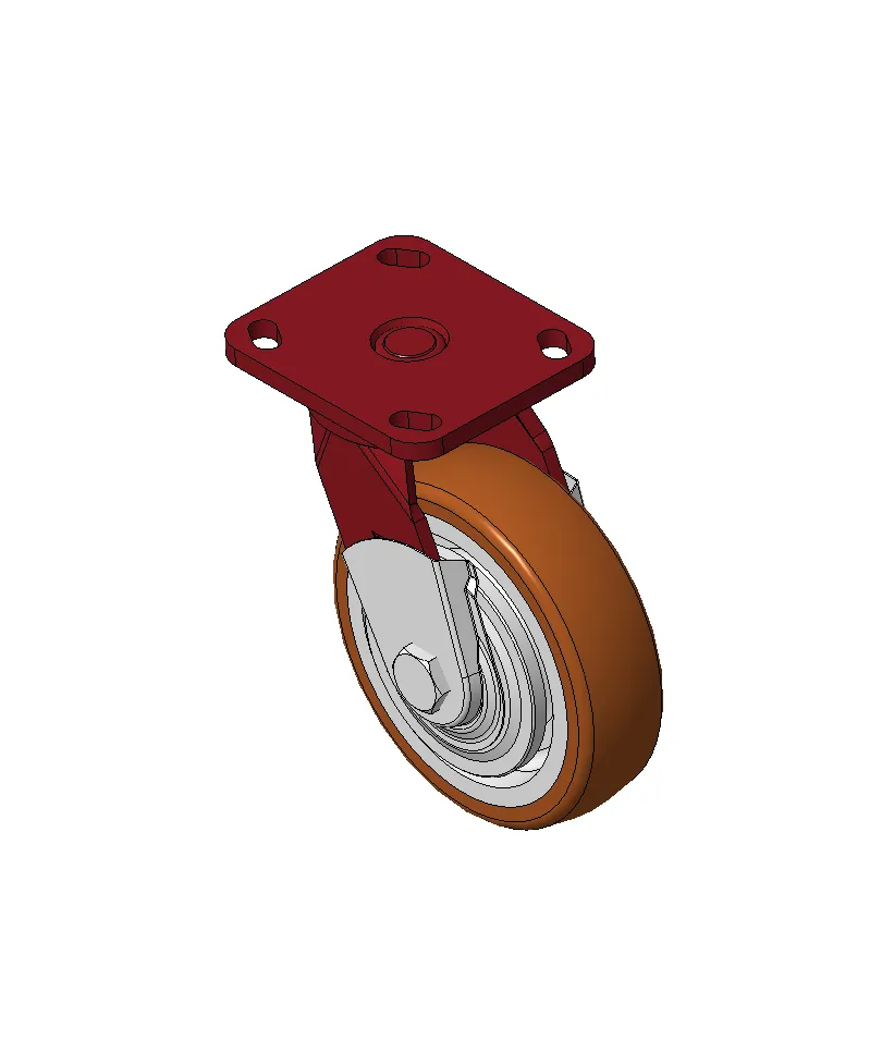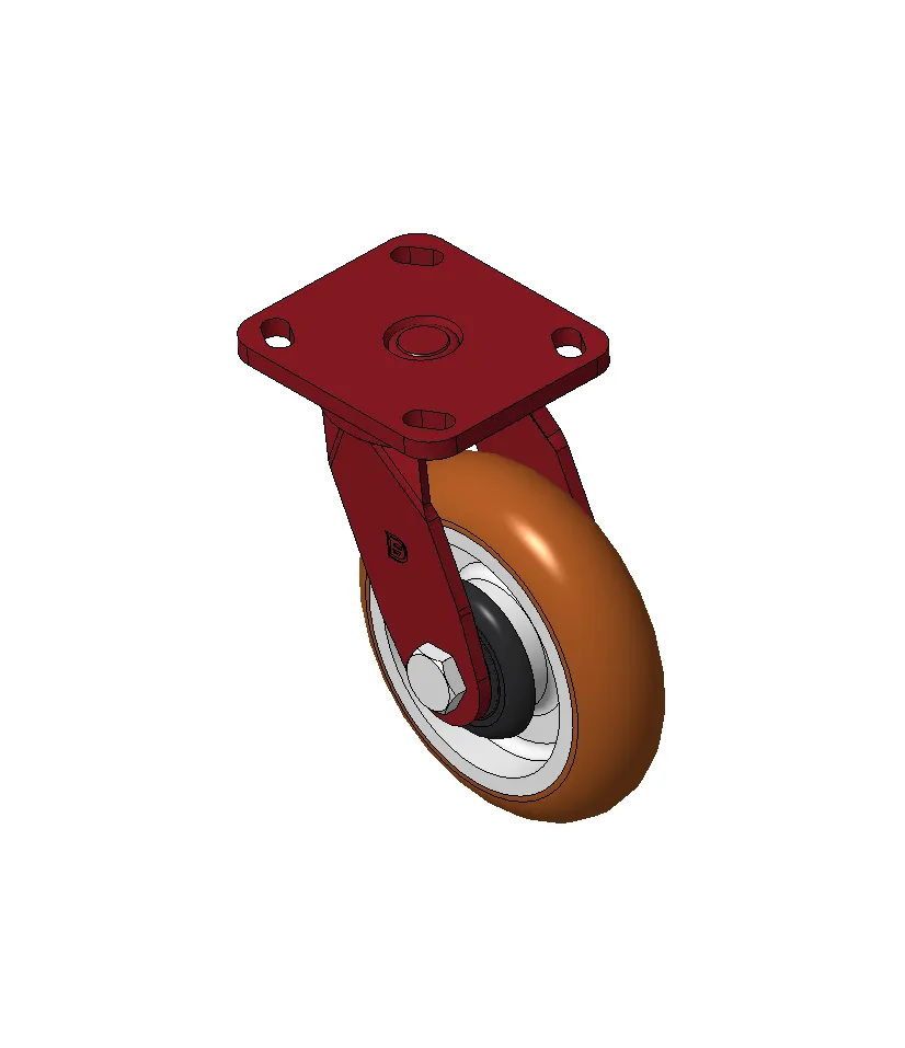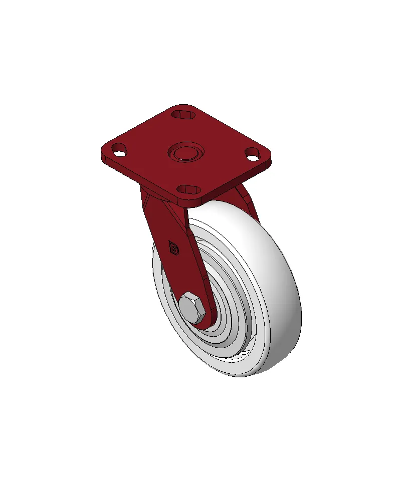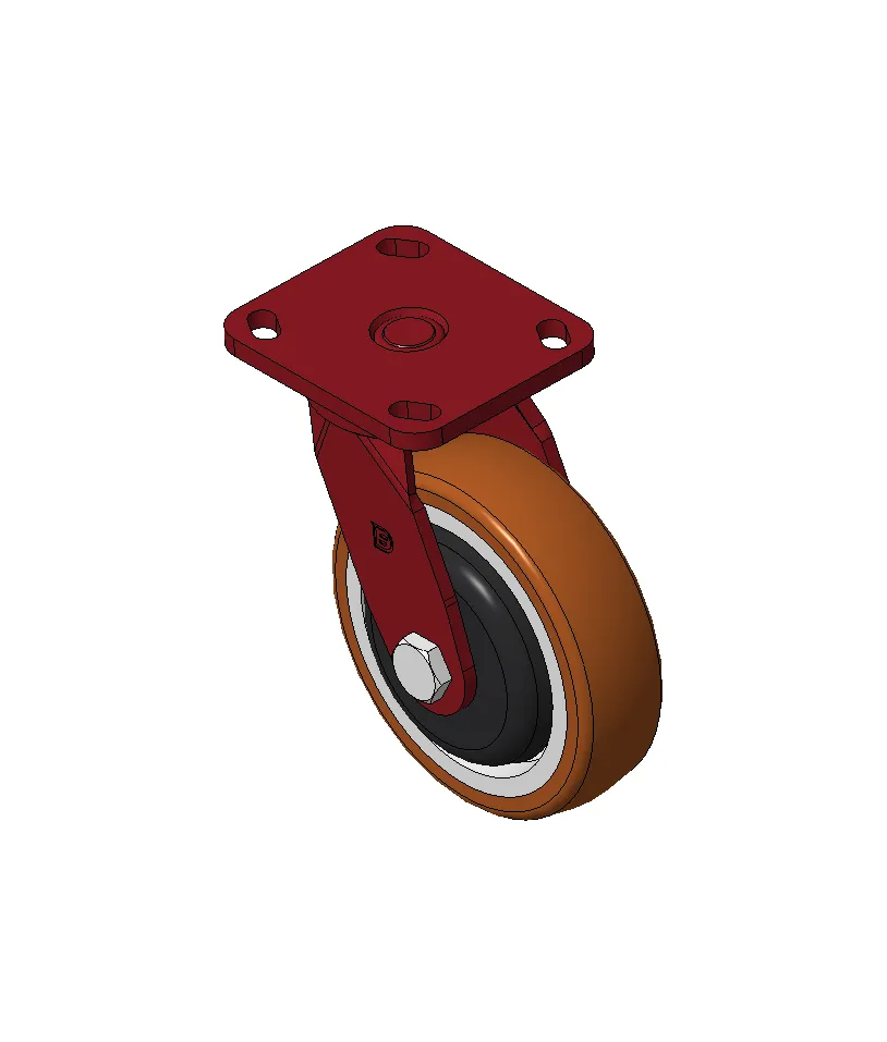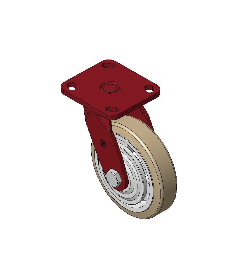 Bánh xe xoay với khung thép hàn, sơn phủ màu đỏ.
