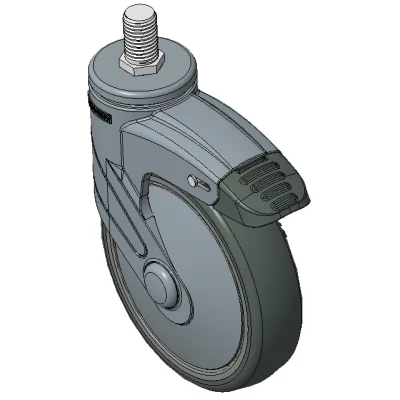 Bánh xe có hệ thống khóa kép dài, ren M16x25 Chân màu xám xanh được gia cố bằng polyamide, lắp đặt bằng ren Chống gỉ, chống ăn mòn, thẩm mỹ, tiết kiệm và xoay linh hoạt Lõi bánh xe bằng polypropylene chịu va đập, bề mặt bánh xe bằng chất đàn hồi nhiệt dẻo (TPR) Vòng bi bánh xe màu xám đậm - vòng bi cầu chính xác