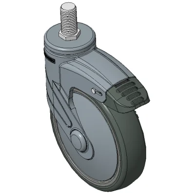 Bánh xe dài loại phanh kép, hệ thống khóa, ren M16x25 Đế làm bằng nhựa polyamide gia cường, lắp đặt bằng ren Chống gỉ, chống ăn mòn, đẹp, tiết kiệm và xoay linh hoạt Lõi bánh xe bằng polypropylene chịu va đập, bề mặt bánh xe bằng chất đàn hồi nhiệt dẻo (TPR) Màu xám đậm, vòng bi bánh xe - vòng bi cầu chính xác