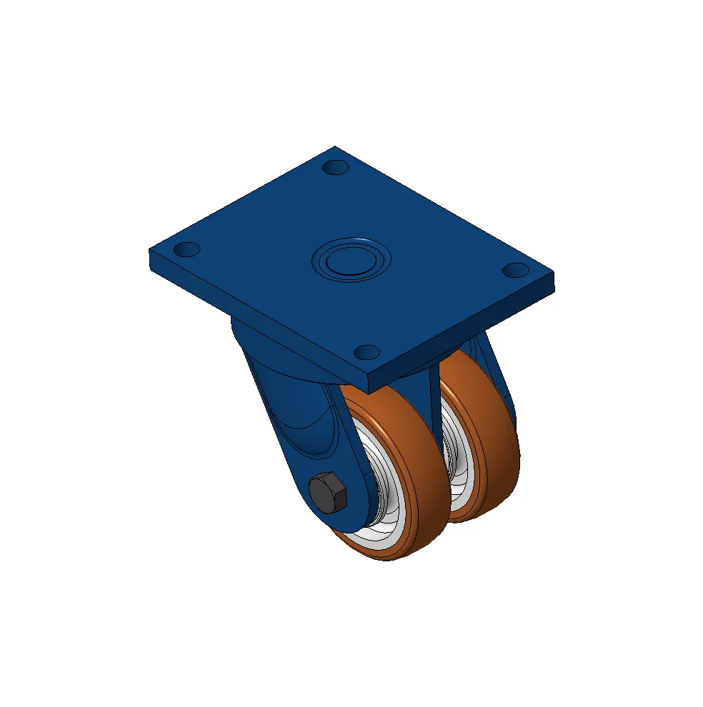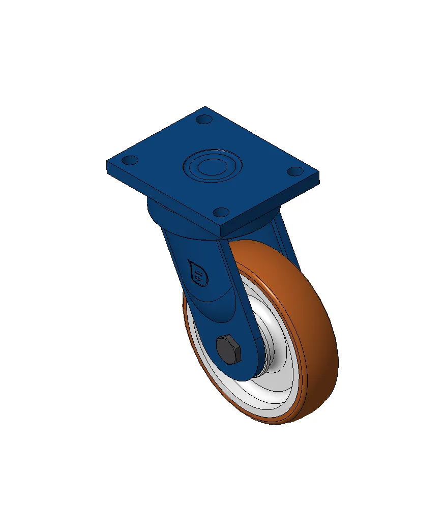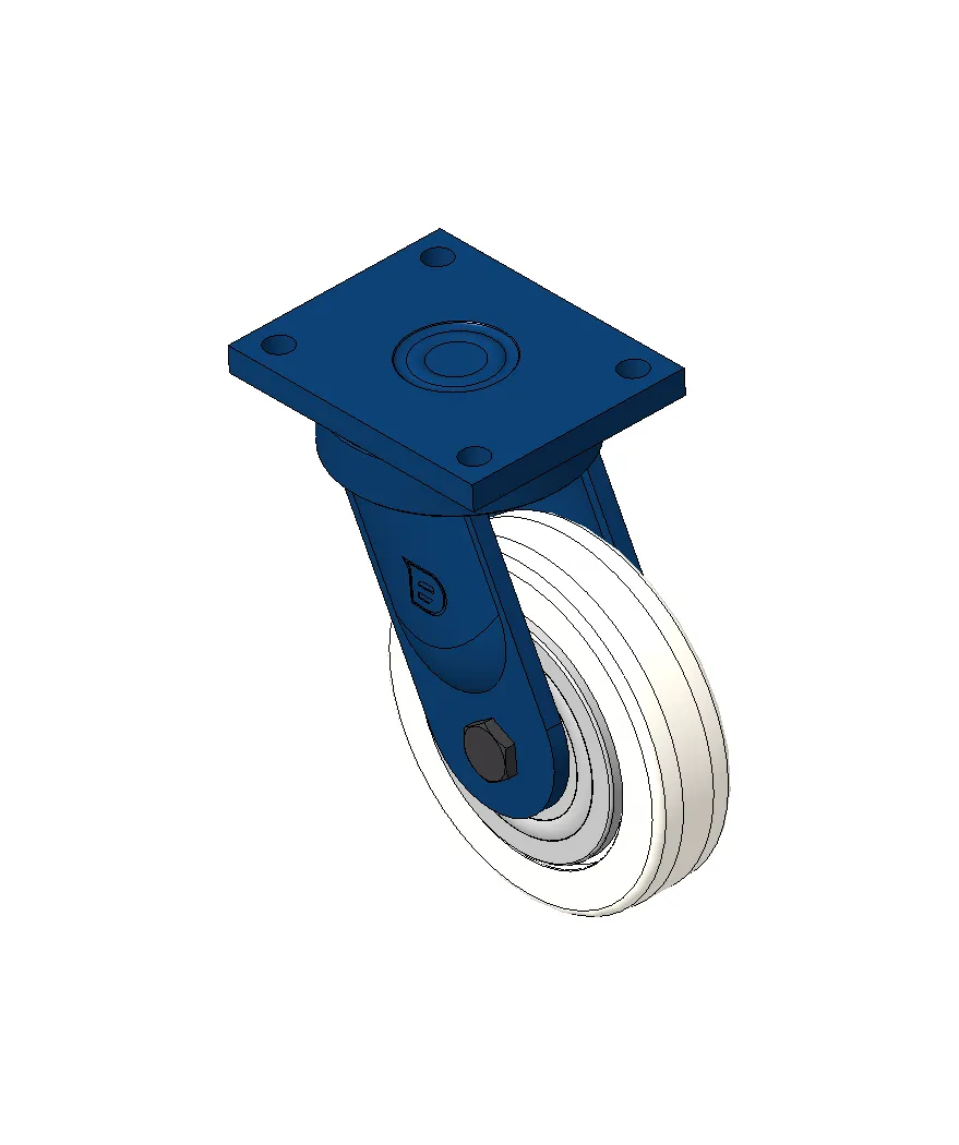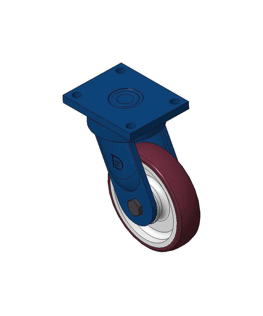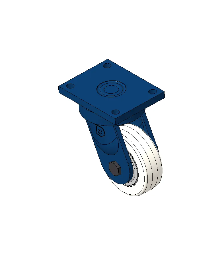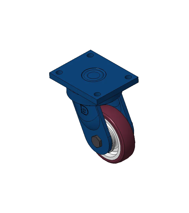 Bánh xe xoay với khung thép hàn, sơn phủ màu xanh.