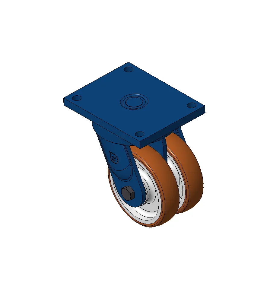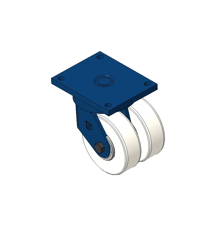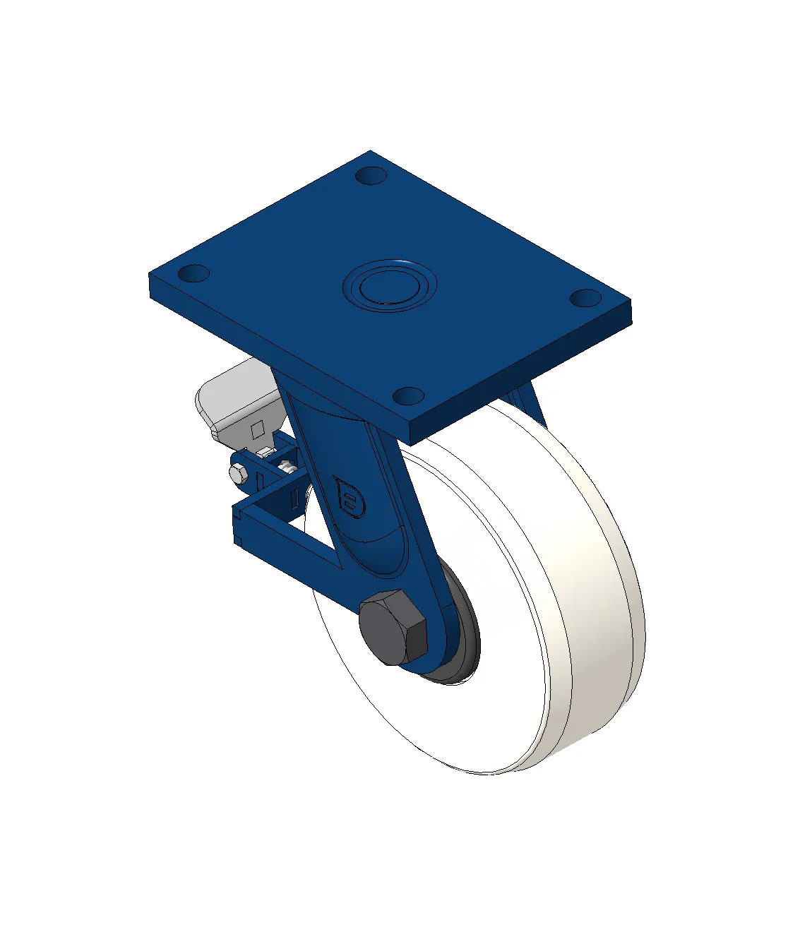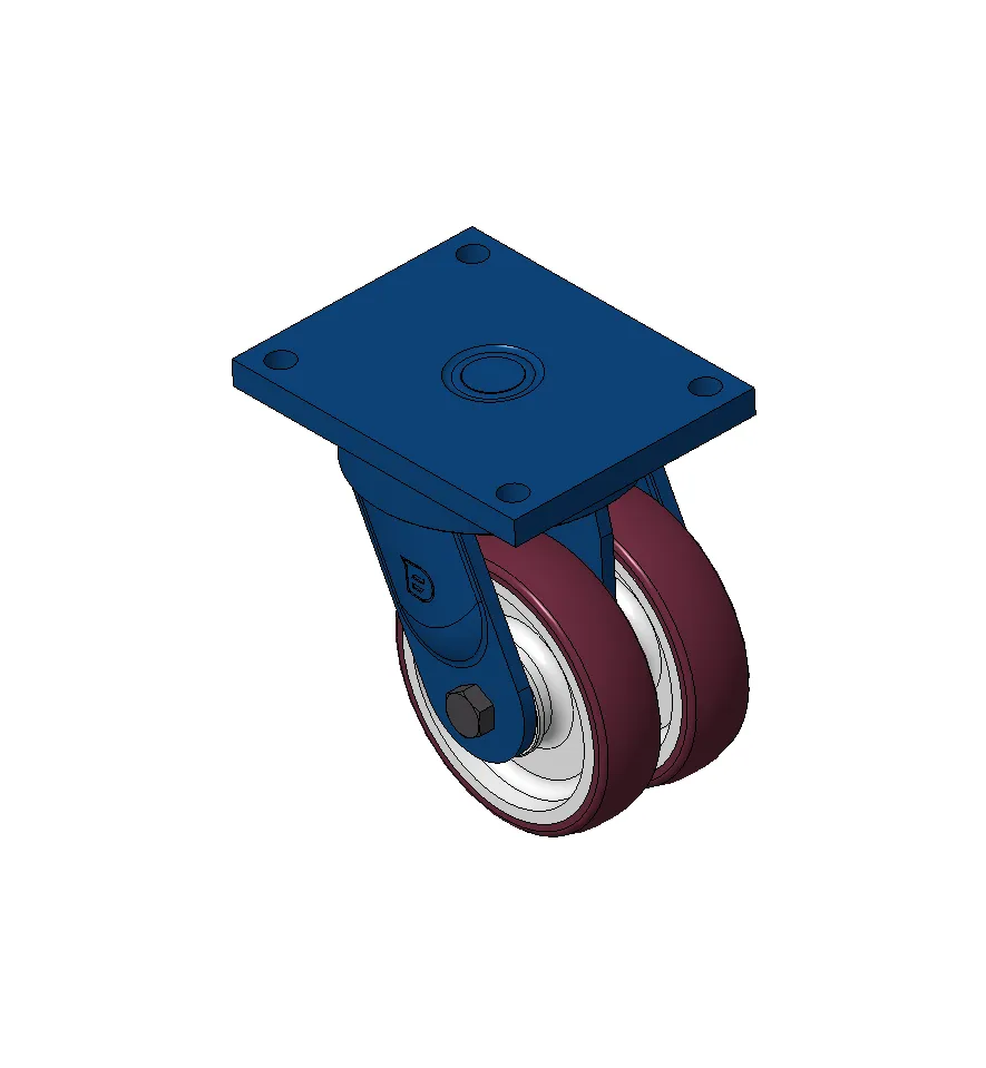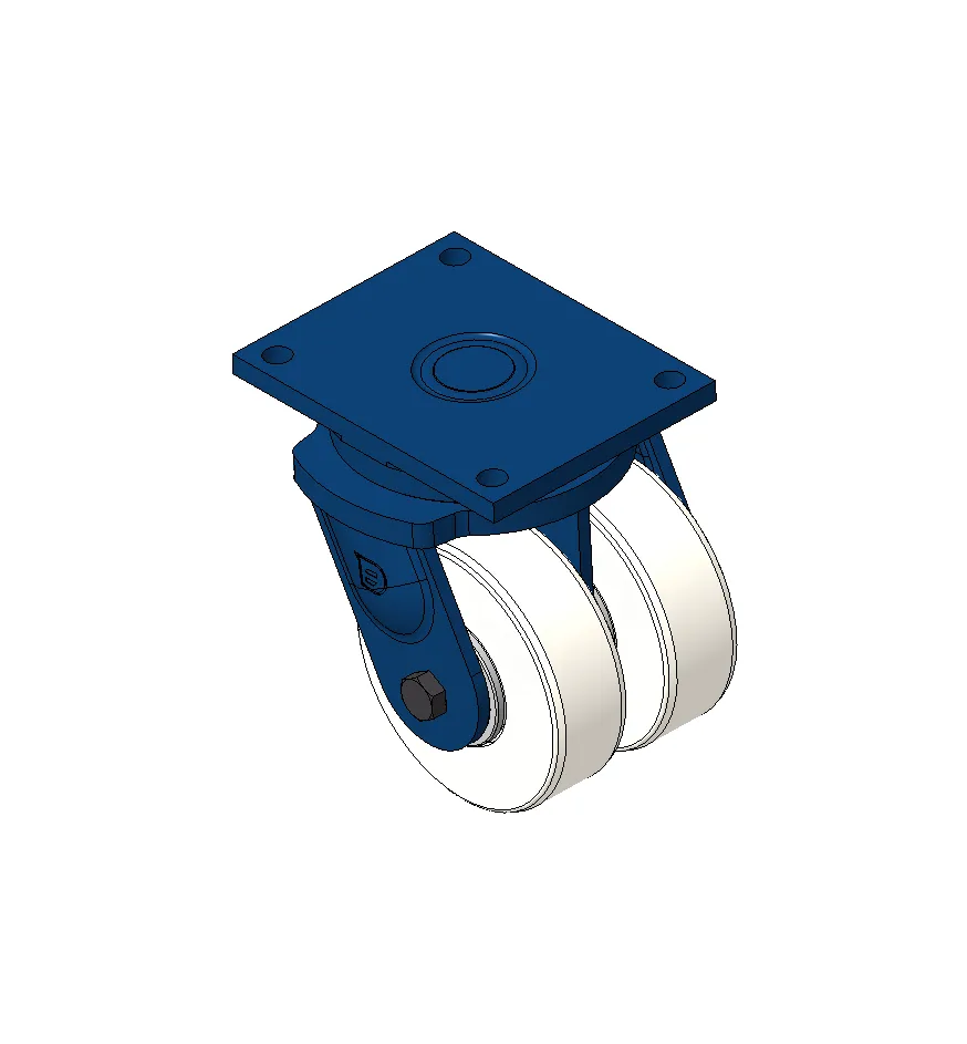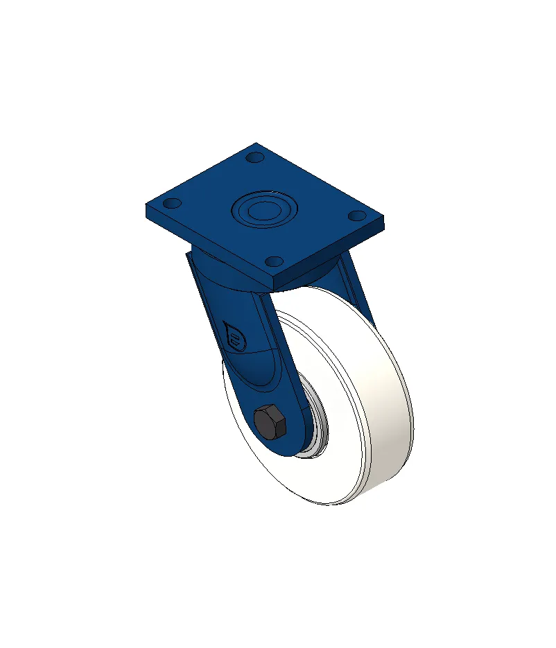 Bánh xe xoay với khung thép hàn, sơn phủ màu xanh.
