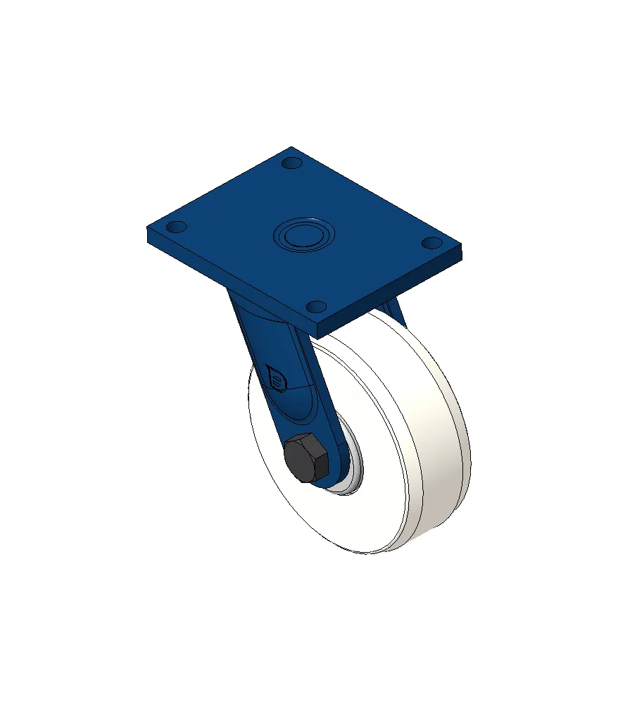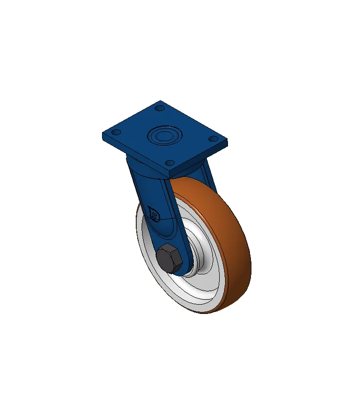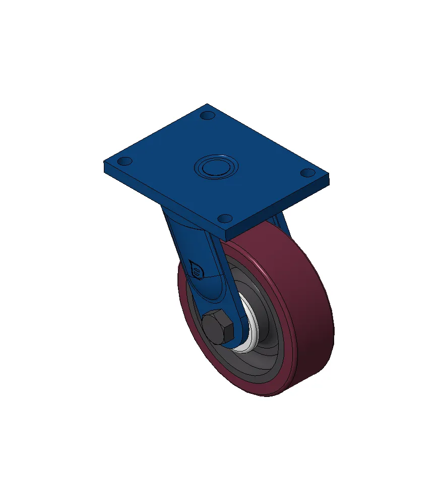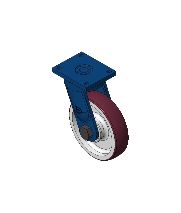 Bánh xe xoay với khung thép hàn, sơn phủ màu xanh.