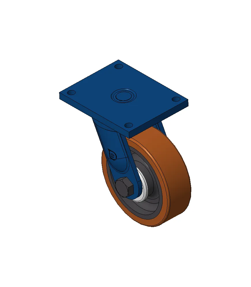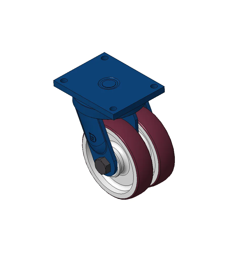 Bánh xe xoay với khung thép hàn, sơn màu xanh
