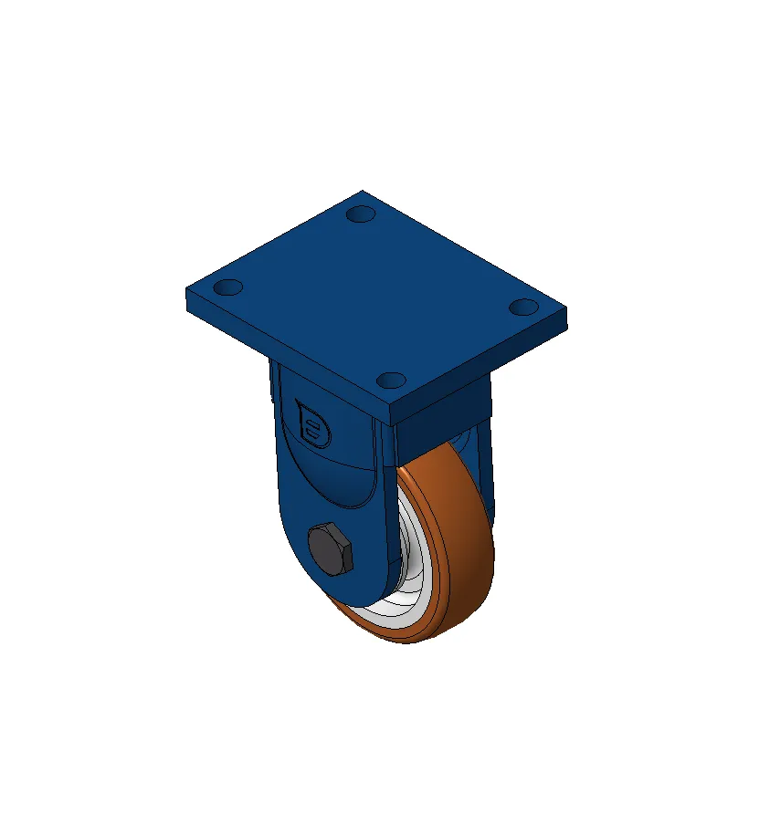 Bánh xe cố định với khung thép hàn, sơn phủ màu xanh.
