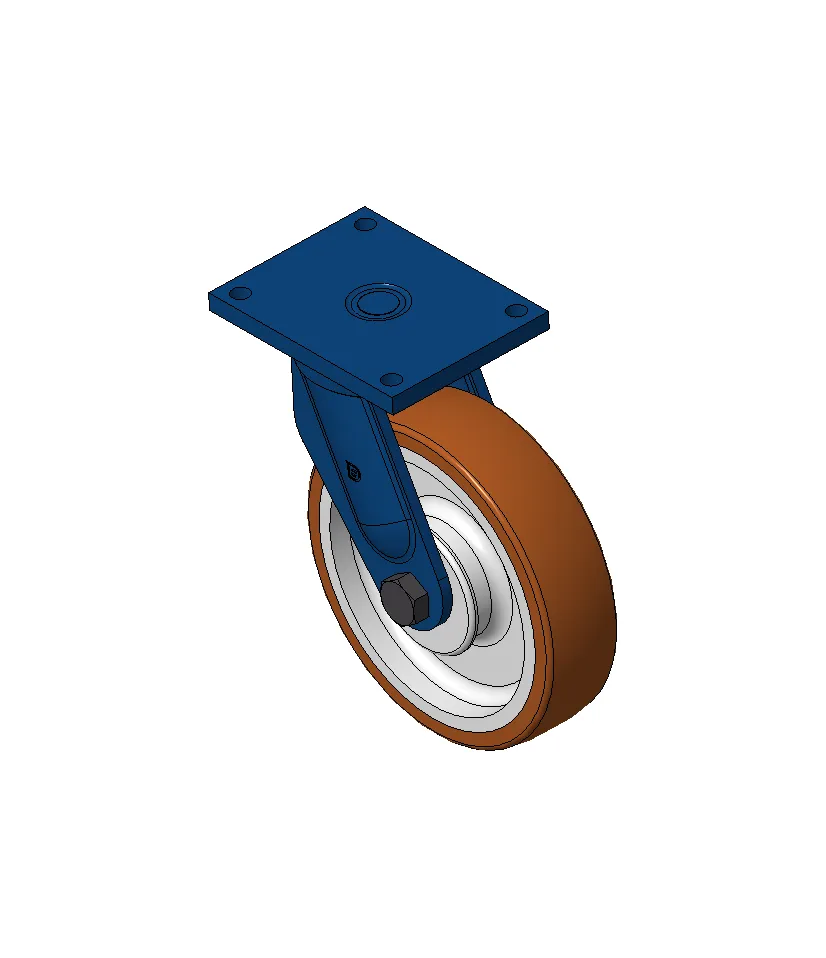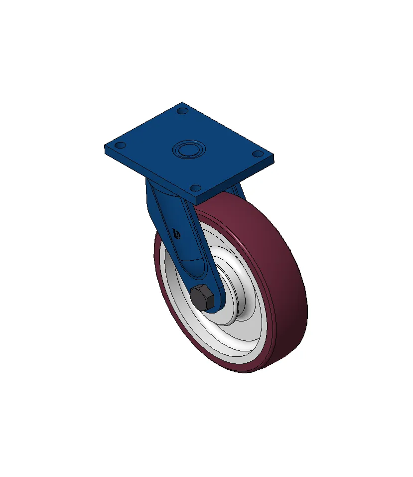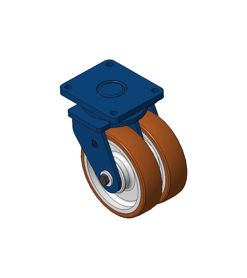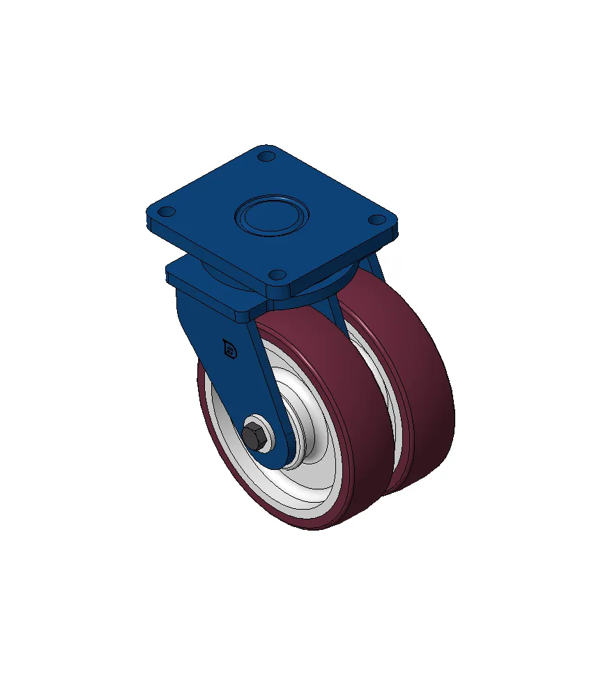 Bánh xe xoay với khung thép hàn, sơn phủ màu xanh.