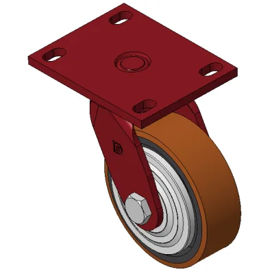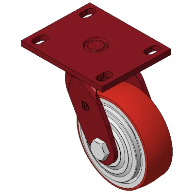 Lõi bánh xe bằng gang, bề mặt bánh xe bằng polyurethane chất lượng cao, được phay màu đỏ.