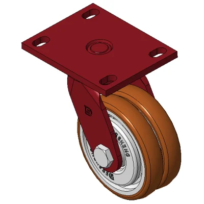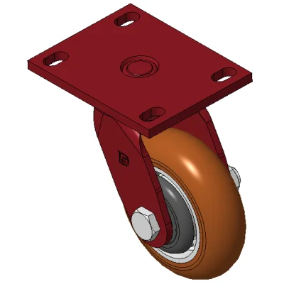 Bánh xe xoay với khung thép hàn, sơn phủ màu đỏ.