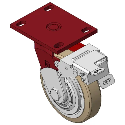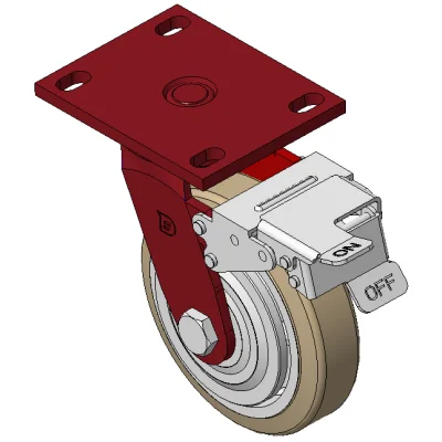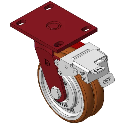Bánh xe xoay với khung thép hàn và lớp sơn đỏ.