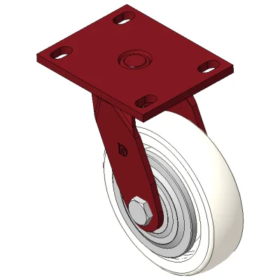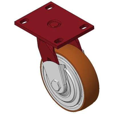Bánh xe xoay với khung thép hàn, sơn phủ màu đỏ.