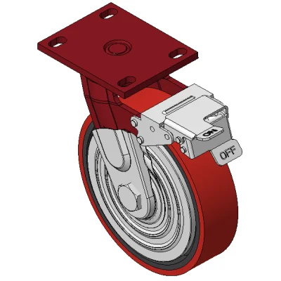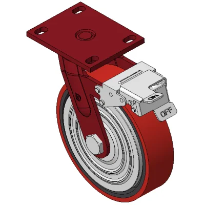 Lõi bánh xe bằng gang, bề mặt bánh xe bằng polyurethane chất lượng cao, được phay màu đỏ.
