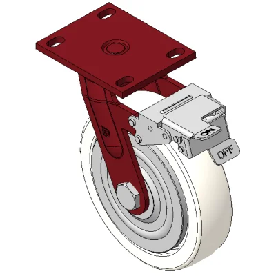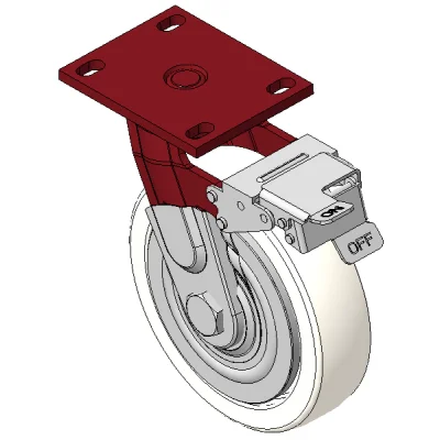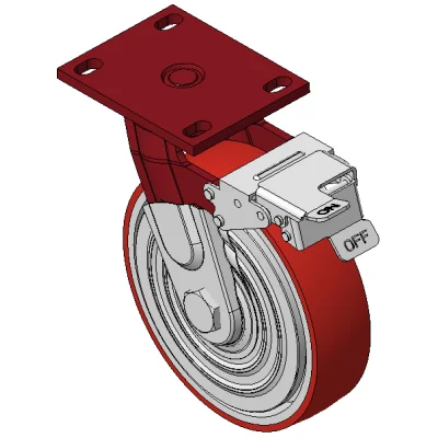 Lõi bánh xe bằng gang, bề mặt bánh xe bằng polyurethane chất lượng cao, được phay màu đỏ.