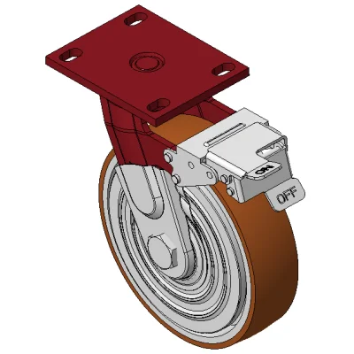 Trục bánh xe bằng gang; bề mặt bánh xe bằng polyurethane chất lượng cao; hoàn thiện màu nâu phay.