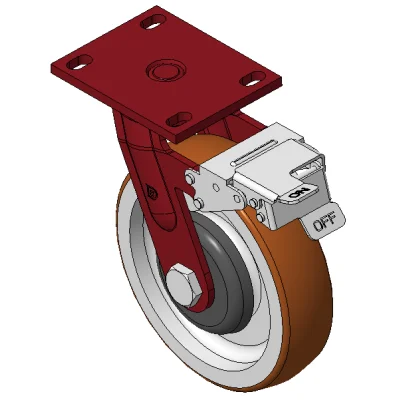 Bánh xe có hệ thống phanh và khóa bánh trước, khung thép hàn Sơn đỏ, lắp đế, khoảng cách lỗ 85x70 Lõi bánh xe bằng gang, gai polyurethane chất lượng cao, phay màu đỏ Ổ bi bánh xe—ổ bi chính xác với nắp bánh xe chống quấn đặc biệt