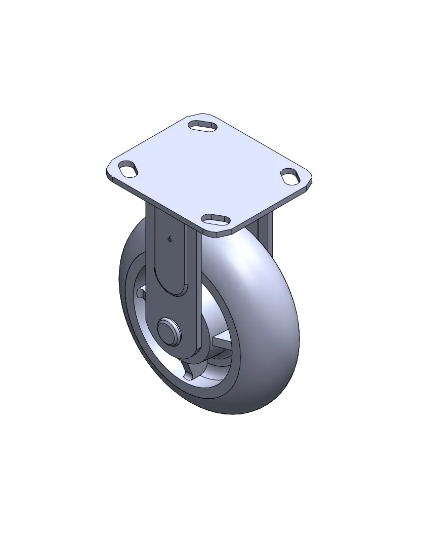 Bánh xe cố định với khung thép hàn Bề mặt mạ điện, lắp đế Lõi polypropylene chống va đập gia cố với gai nhựa nhiệt dẻo đàn hồi (TPR) Vòng bi bánh xe màu xám—bánh răng dài chính xác