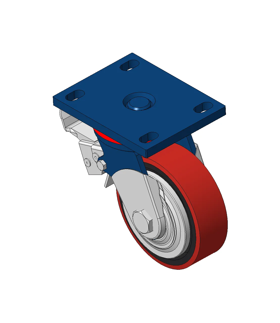 Bánh xe PU(bánh phẳng màu đỏ) đường kính bánh xe × chiều rộng bánh xe là 125 × 40 mm.