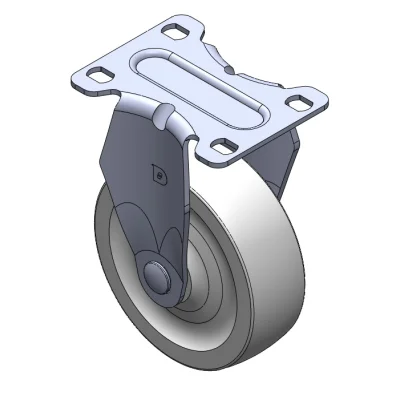 Bánh xe cố định, khung dập liền khối — đục lỗ cao cấp Rung bề mặt, thiết bị lắp đặt tấm đế Lõi bánh xe và vành bánh xe bằng nhựa nhiệt dẻo Màu trắng, bánh xe — loại ống trung tâm.