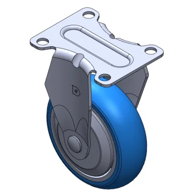 Bánh xe cố định, khung dập liền khối — lỗ thông hơi dụng cụ Rung bề mặt, thiết bị lắp đặt tấm đế Lõi bánh xe bằng nhôm, bề mặt bánh xe bằng polyurethane chất lượng cao Màu xanh lam, ổ bi — ổ bi chính xác.