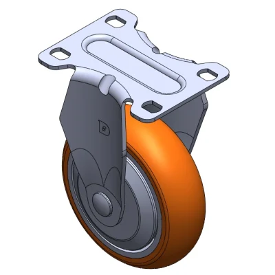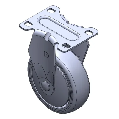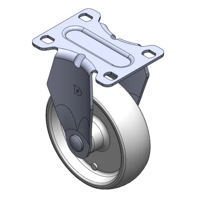 Bánh xe cố định, khung dập liền khối — lỗ dụng cụ Rung bề mặt, thiết bị lắp đặt tấm đế Lõi bánh xe bằng nhôm, bề mặt bánh xe bằng polyurethane chất lượng cao Màu xám, ổ trục bánh xe — ổ bi chính xác.
