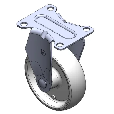 Bánh xe cố định, khung dập liền khối — đục lỗ cao cấp Rung bề mặt, thiết bị lắp đặt tấm đế Lõi bánh xe và vành bánh xe bằng nhựa nhiệt dẻo Màu trắng, bánh xe — loại ống trung tâm.