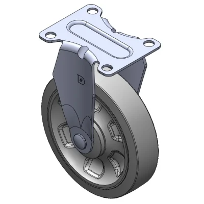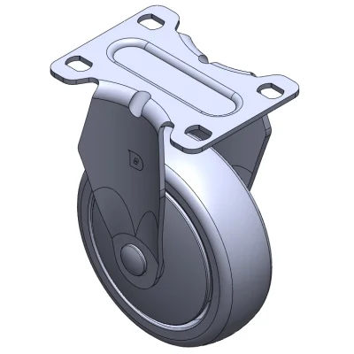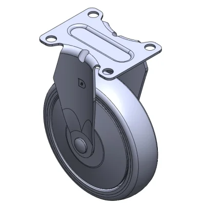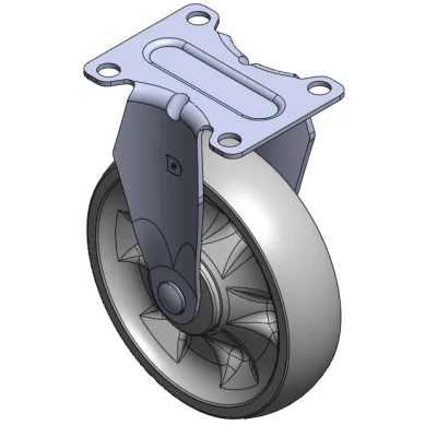 Bánh xe cố định, khung dập liền khối — lỗ dụng cụ Bề mặt rung, thiết bị lắp đặt tấm đế Lõi bánh xe bằng polypropylene gia cố chống va đập, bề mặt bánh xe bằng nhựa nhiệt dẻo đàn hồi (TPR) Màu xám, ổ trục bánh xe — ổ trục bi chính xác.