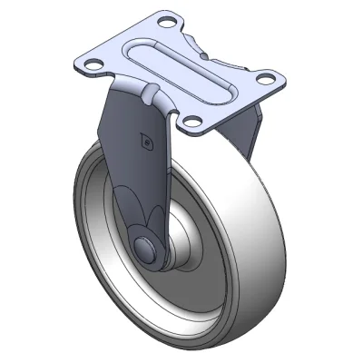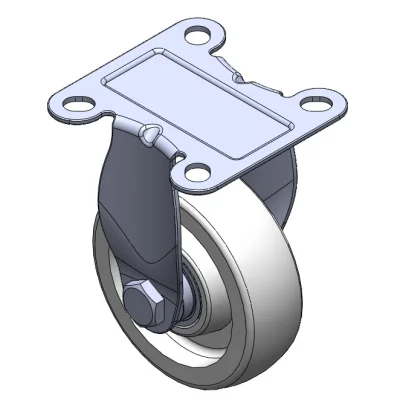 Bánh xe cố định, khung dập liền khối — lỗ dụng cụ Rung bề mặt, thiết bị lắp tấm đế Lõi bánh xe và bề mặt bánh xe bằng nhựa nhiệt dẻo gia cố Trắng, ổ trục bánh xe — ổ trục bi chính xác.
