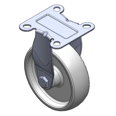 Bánh xe cố định, khung dập liền khối; rung bề mặt, thiết bị lắp tấm đế; lõi bánh xe và bề mặt bánh xe bằng nhựa nhiệt dẻo; màu trắng; ổ trục bánh xe—ổ trục bi chính xác.